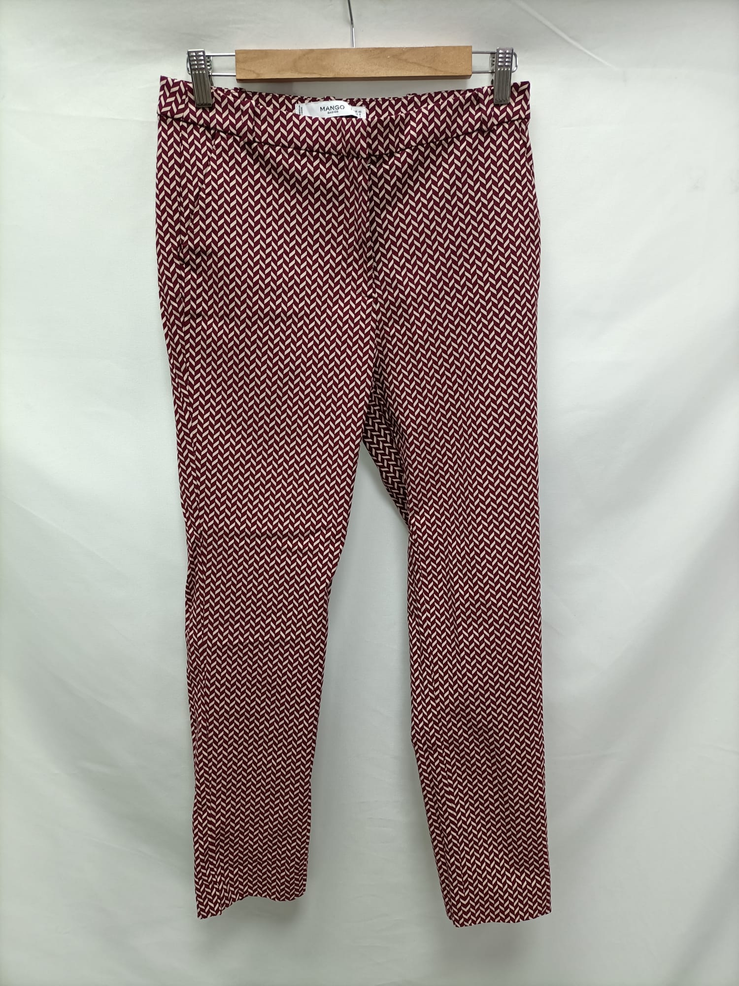 MANGO. Pantalón estampado geométrico en burdeos T.36