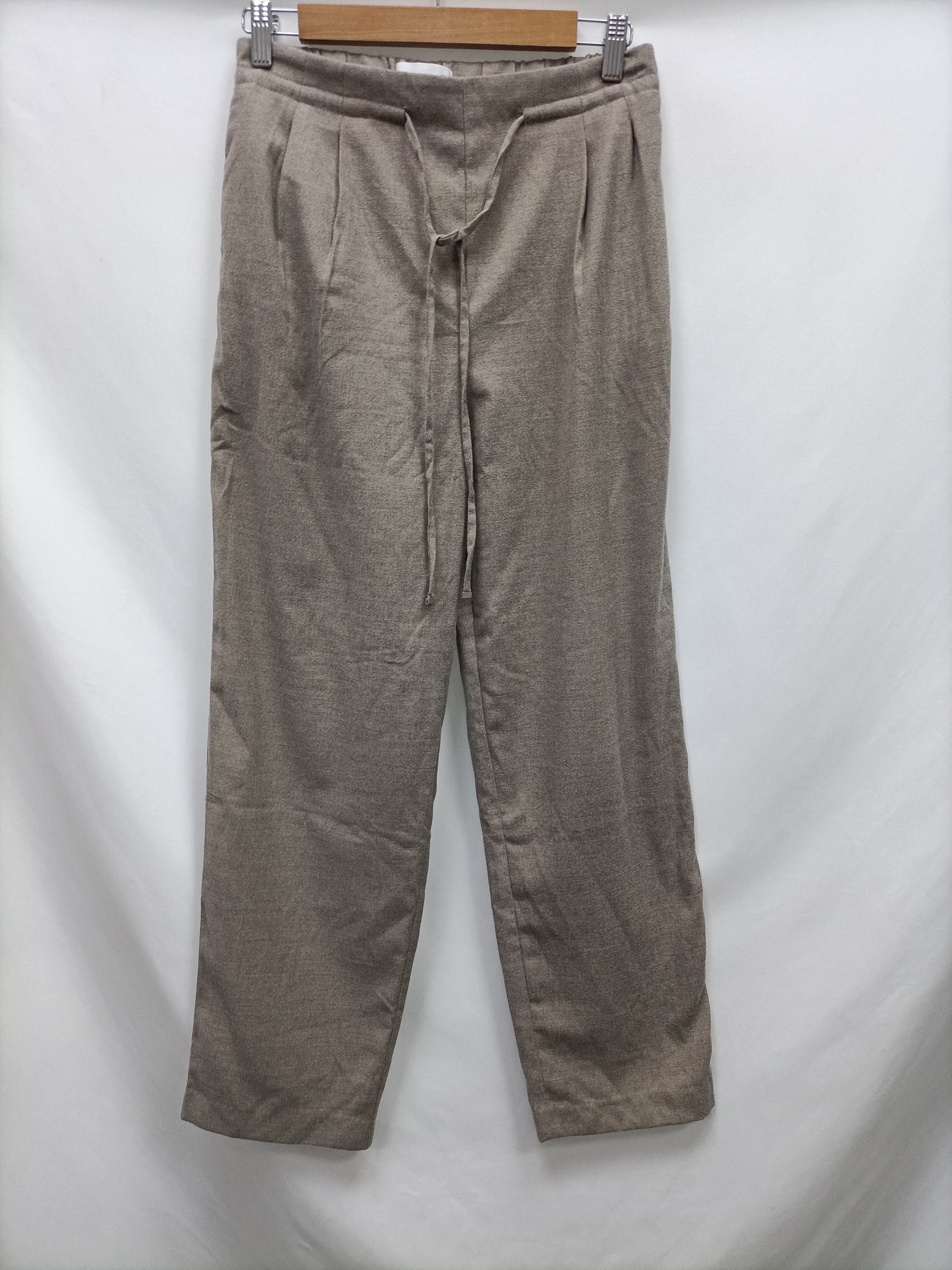 pantalón fluido beige con las cintura elástica ajustable. largo 99 cm