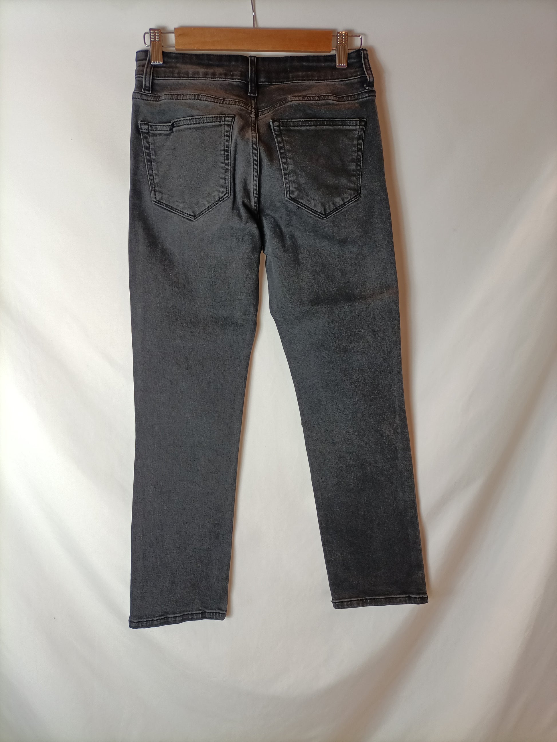 Pantalón denim gris recto semielástico. cintura 36 cm largo 94 cm .
