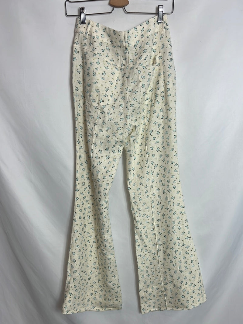 MANGO. Pantalón lino fluido flores. T 34