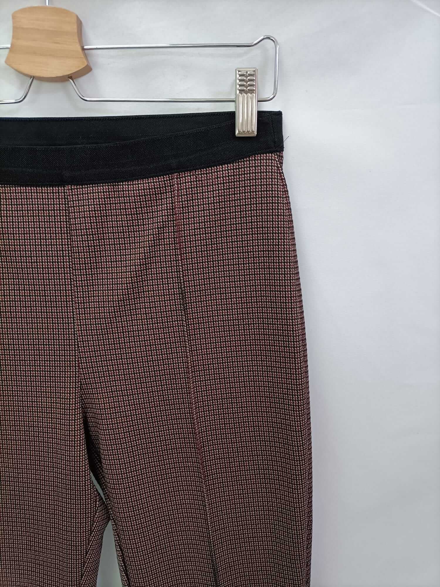 Mango. M. Pantalón de pata de gallo en tonos tierra con la cintura negra elástica. Ligeramente acampado. Largo 95 cm