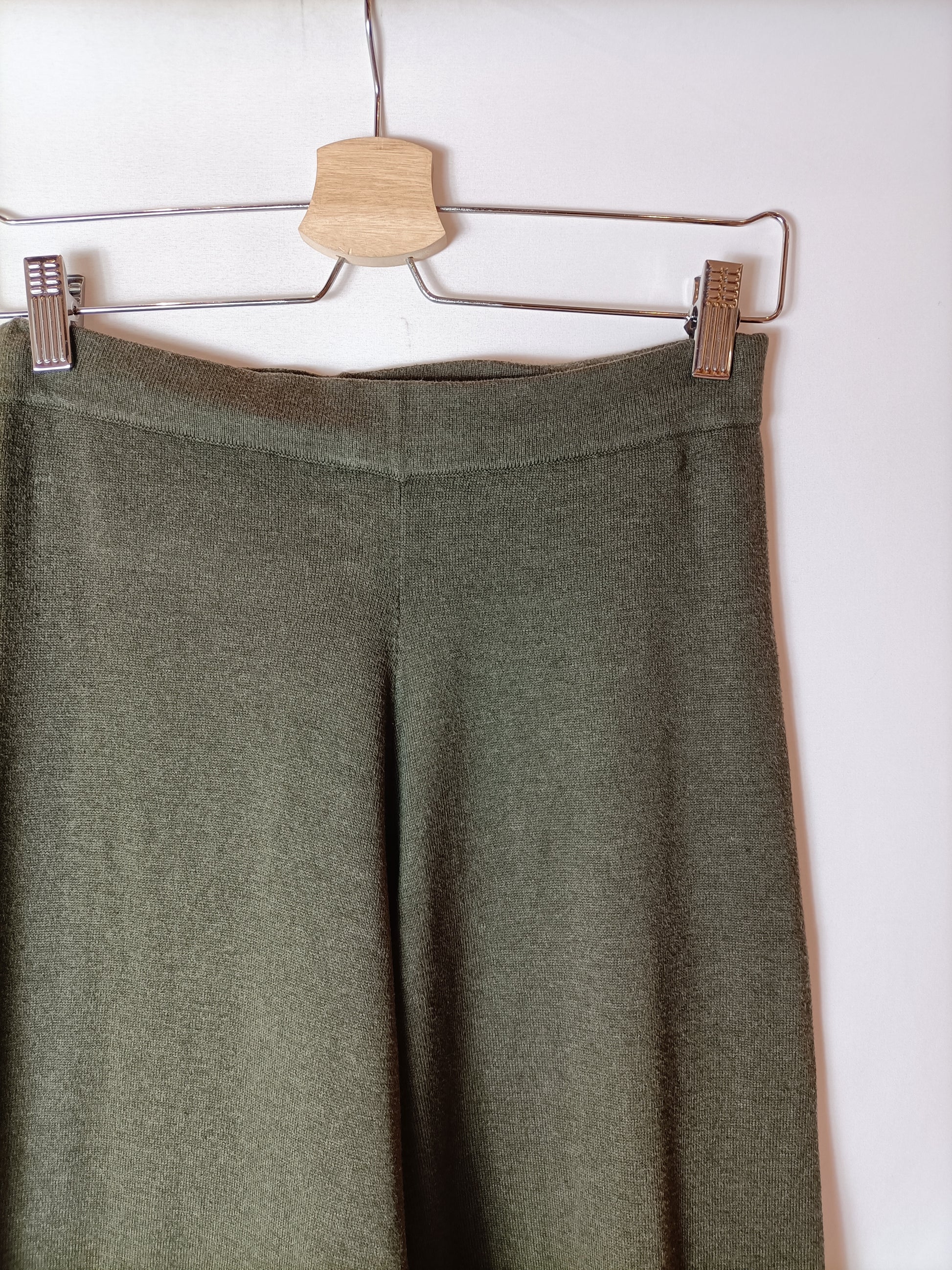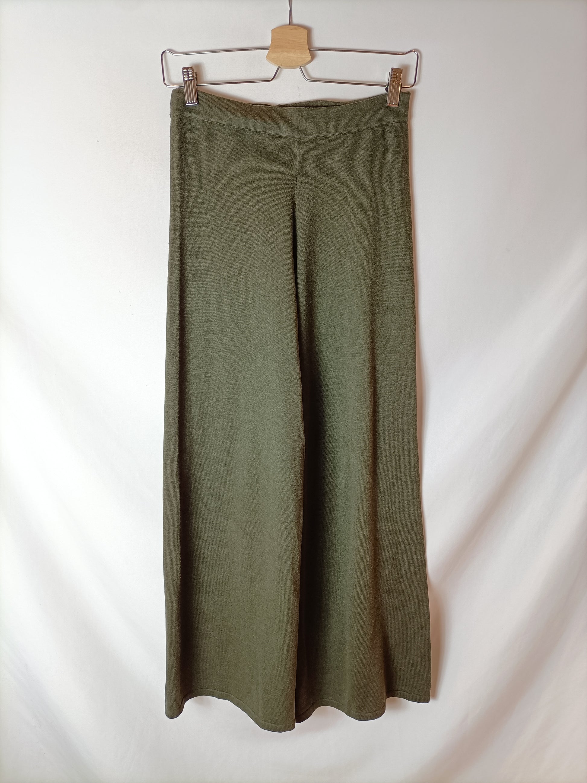 Pantalón de punto verde ancho. Elástico.