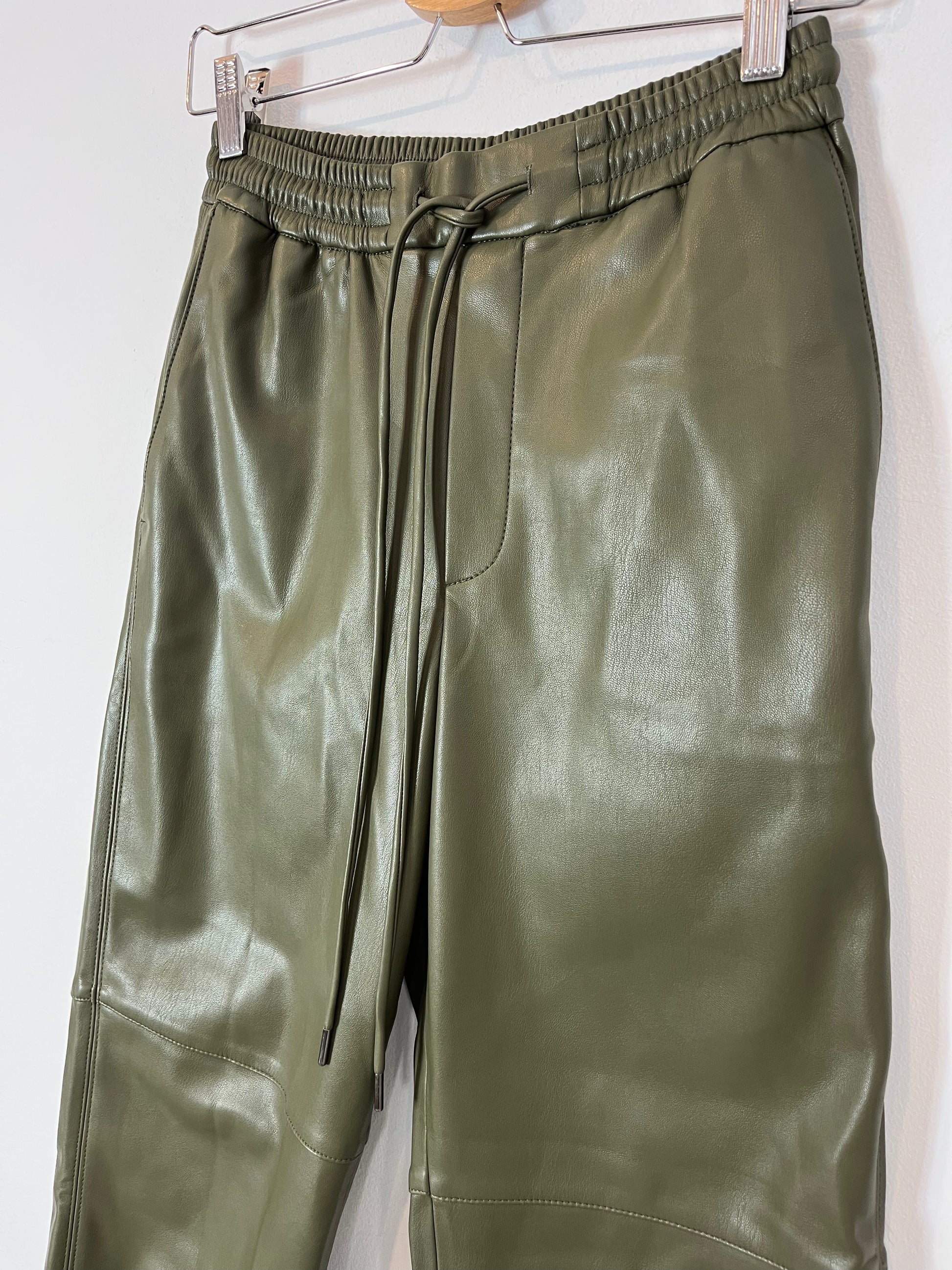 MANGO. Pantalón verde oliva efecto piel. T XS