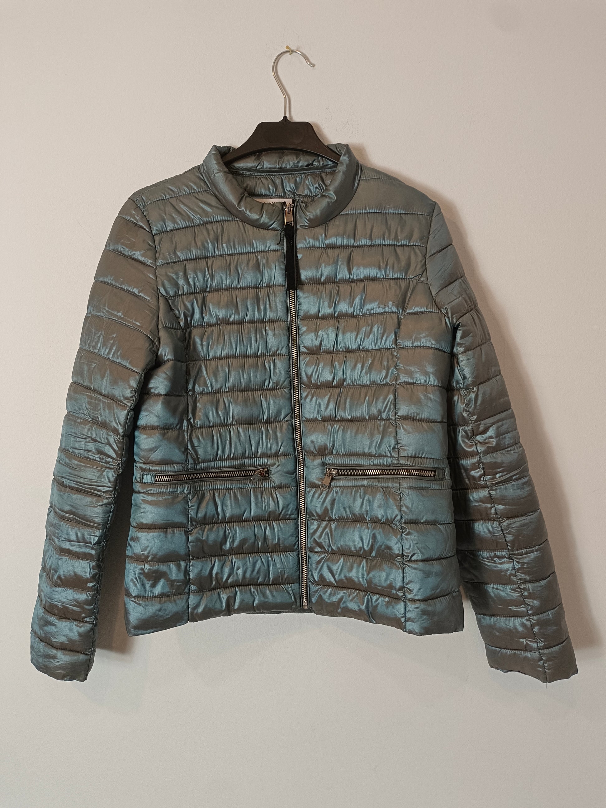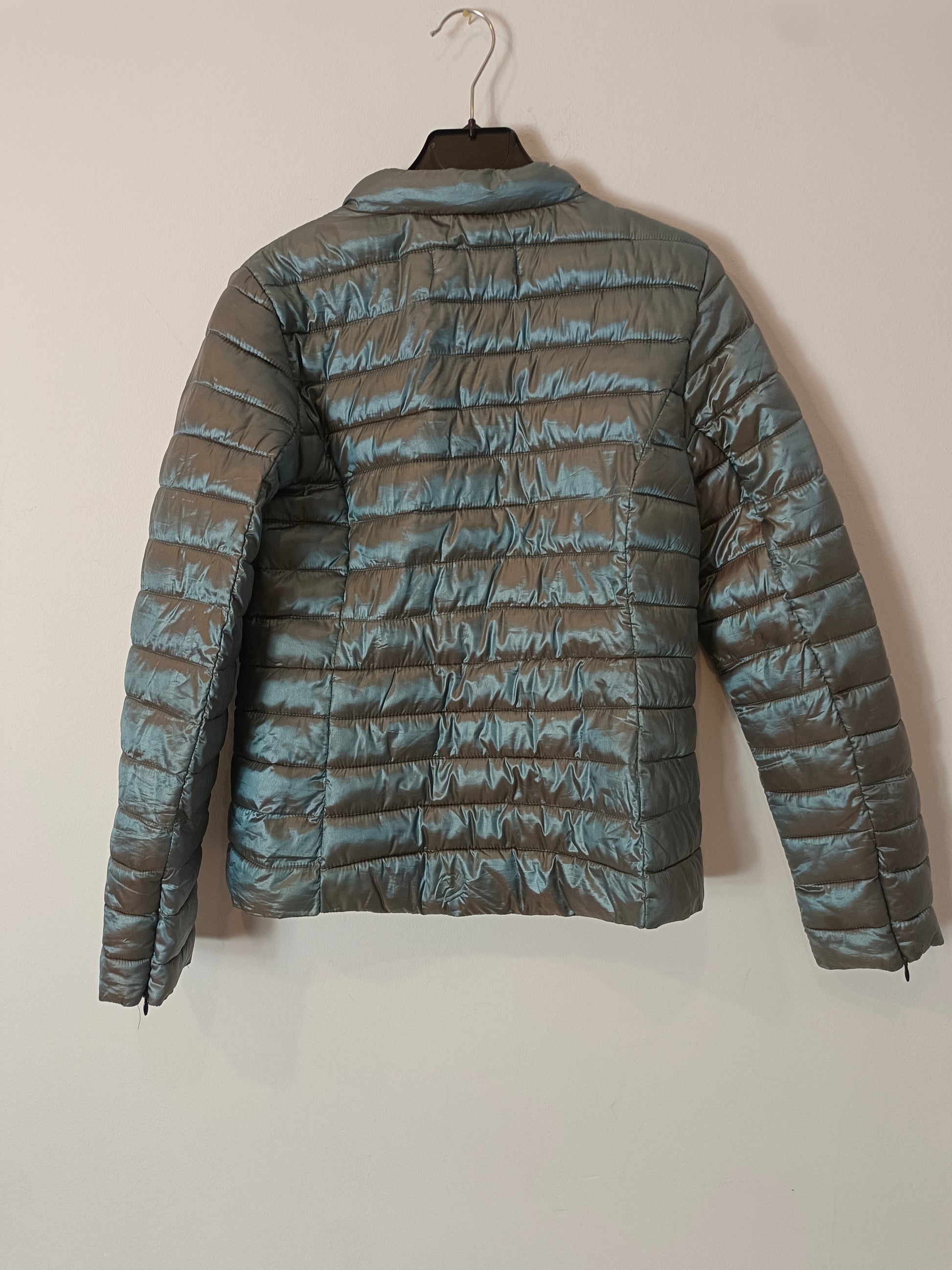 Abrigo gris/azulado metalizado. Ligero se Abrocha con cremallera