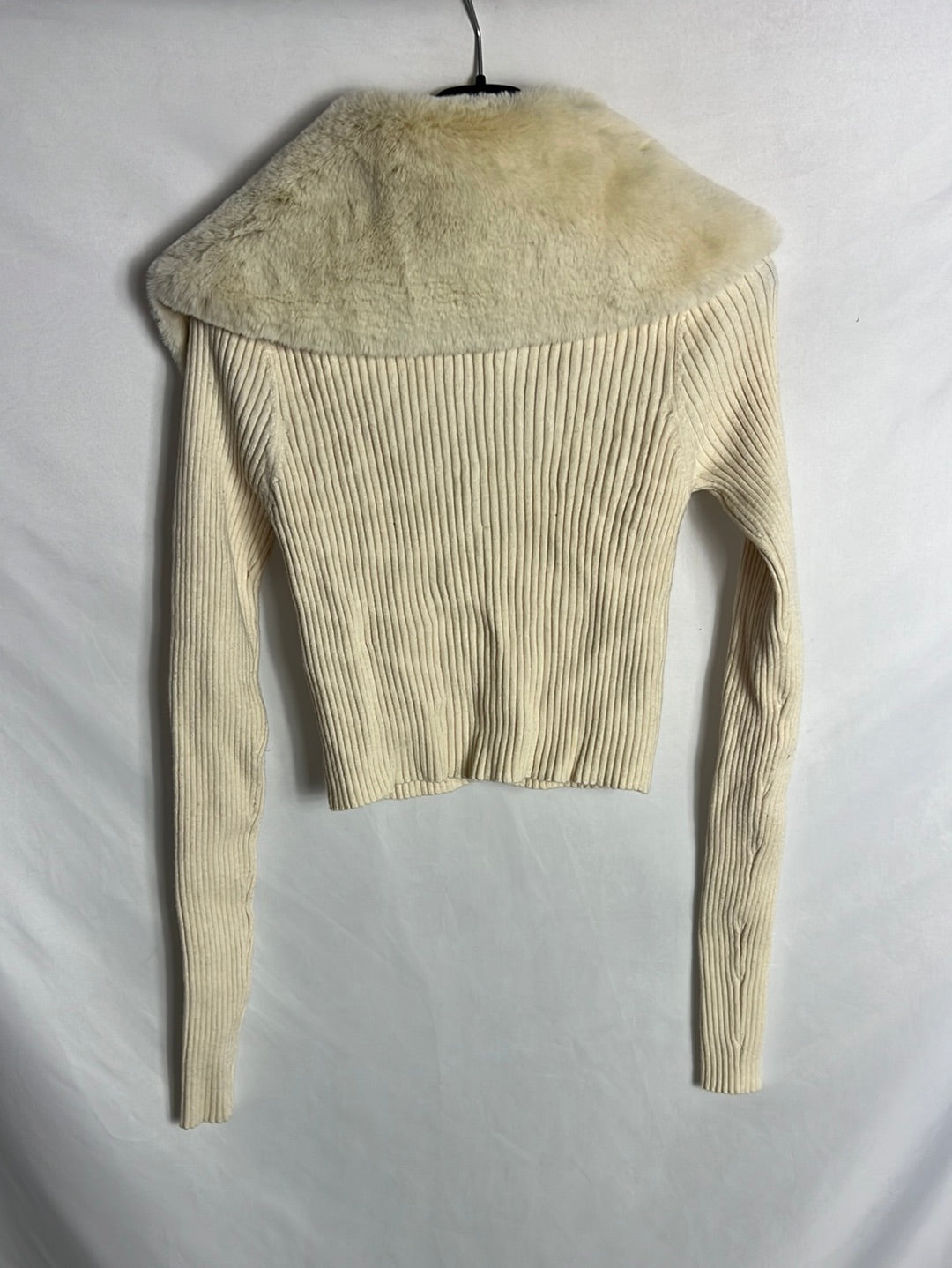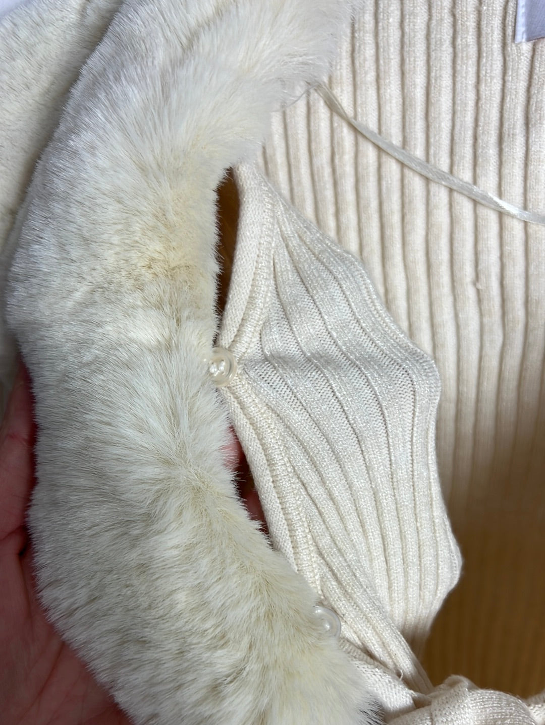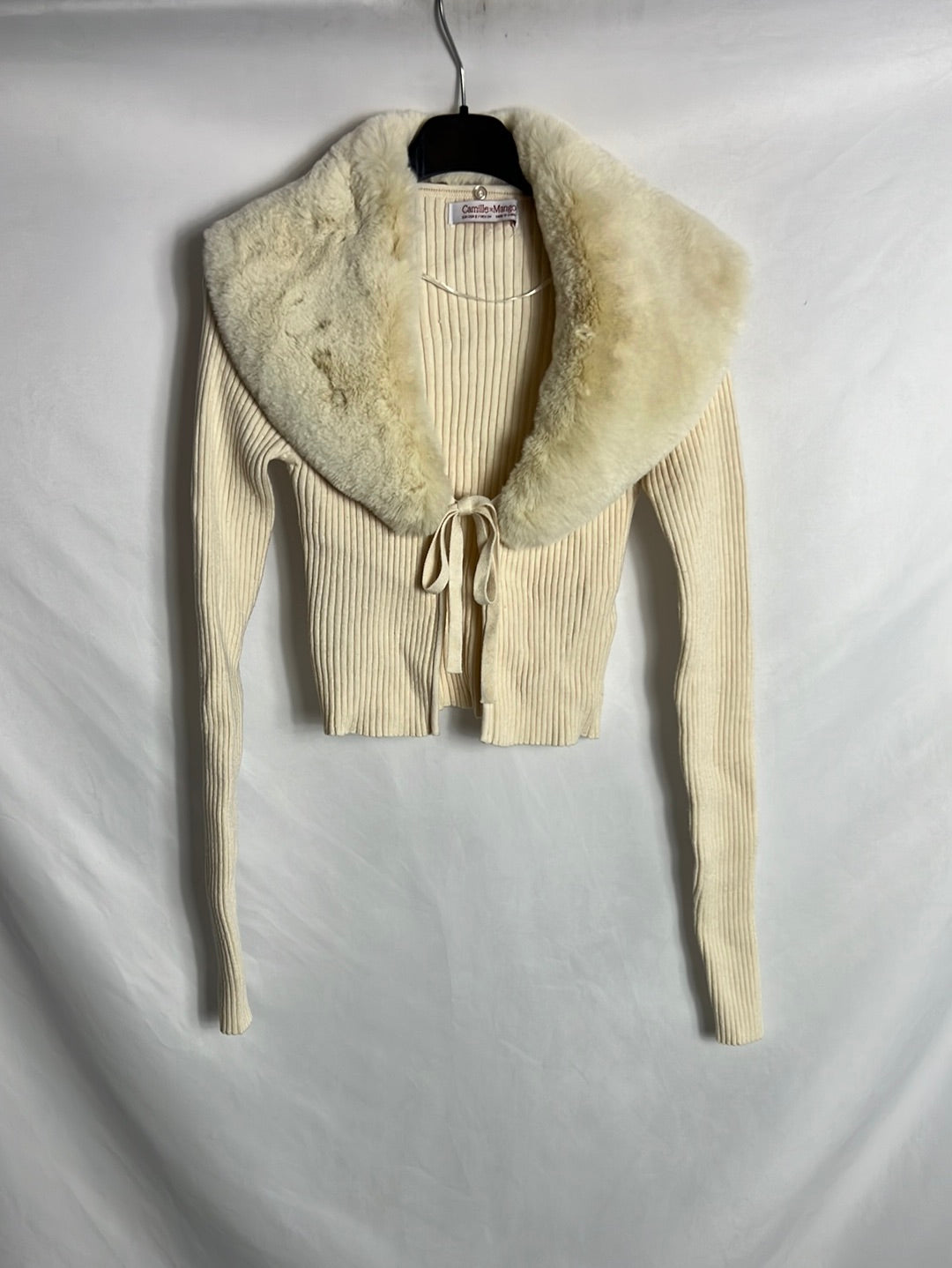 rebeca de canalé beige entallada con pelo extraíble. Colección CAMILLE* MANGO. Elástica