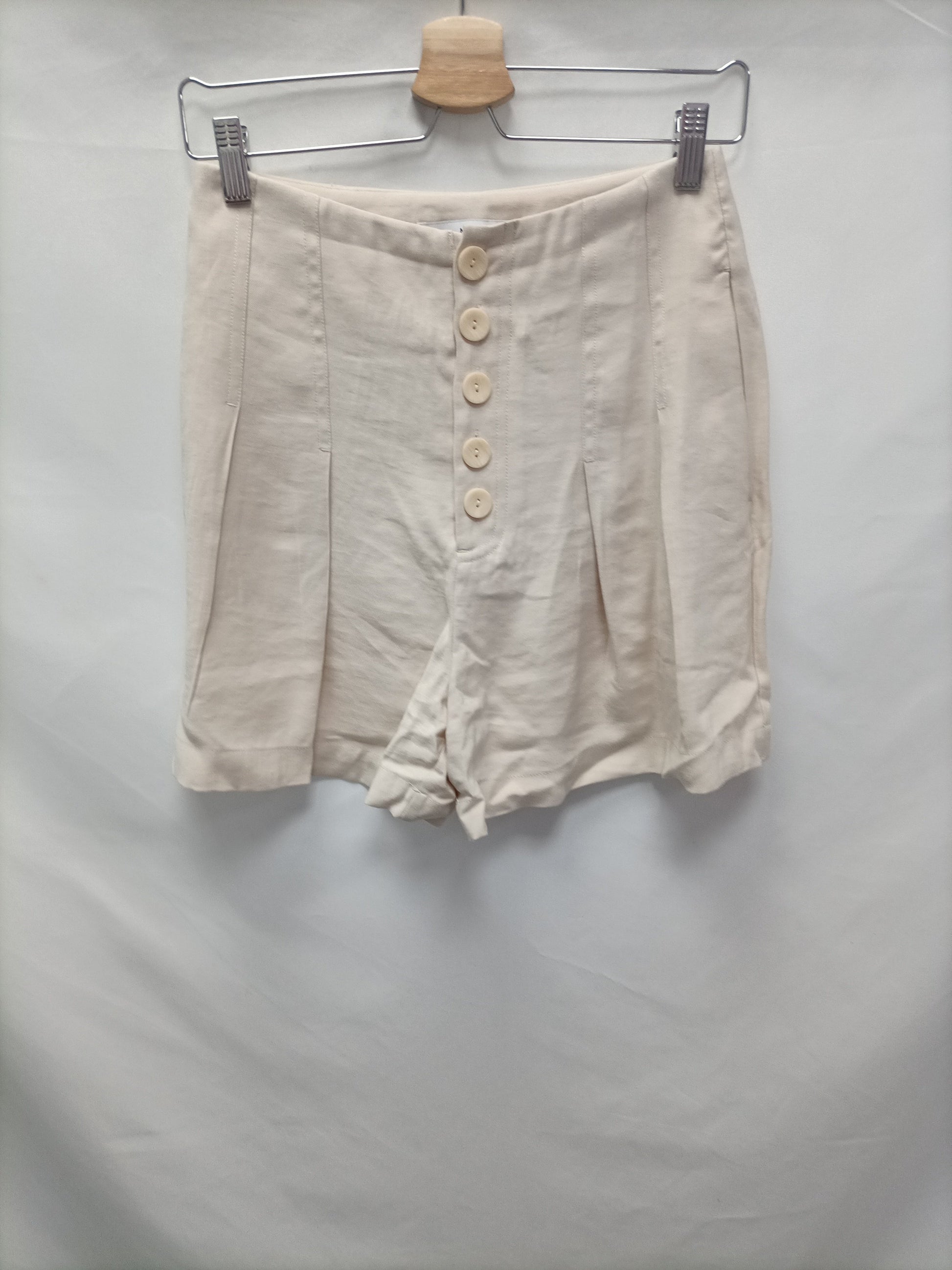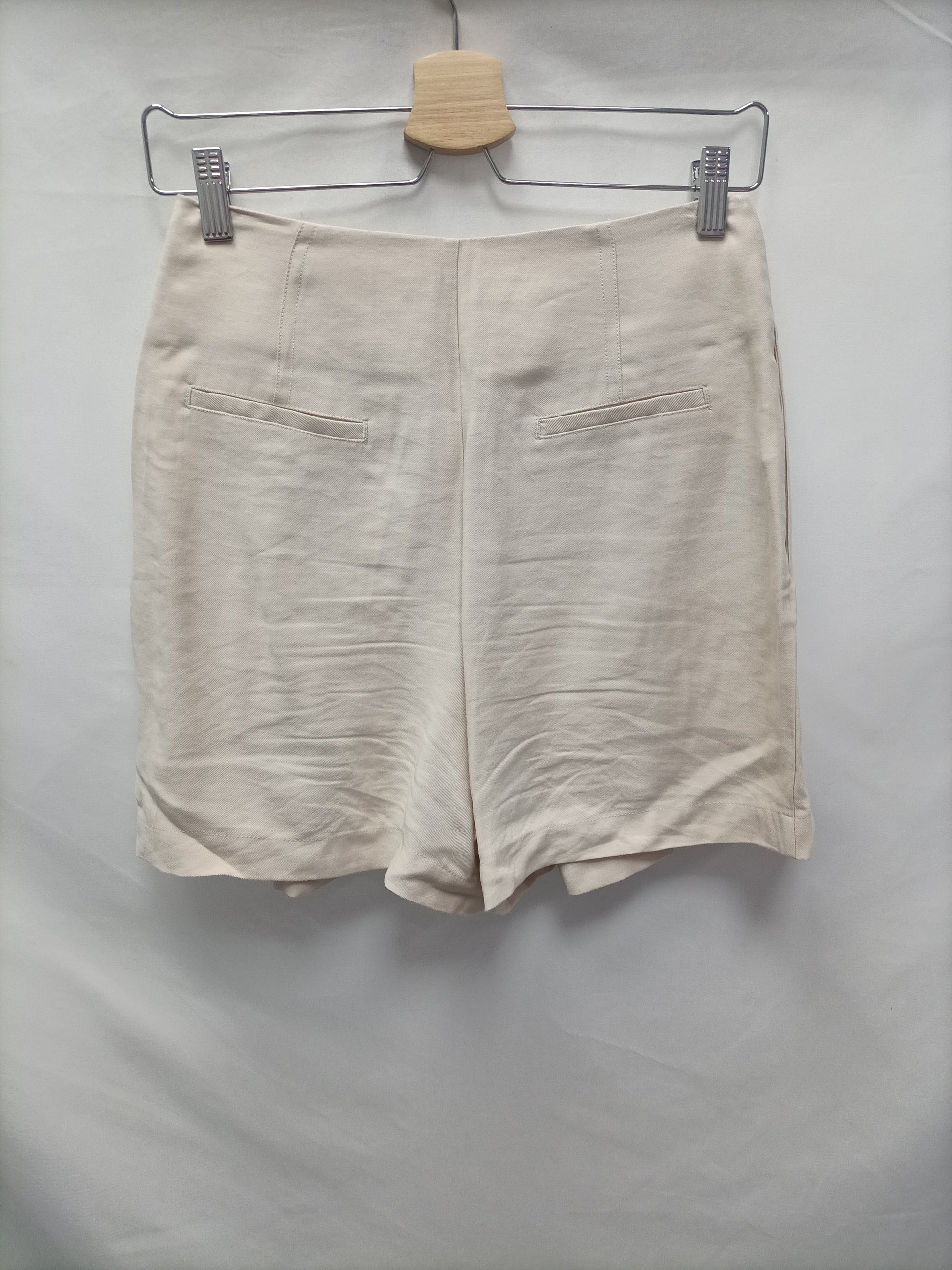 Shorts fluido beige claro con detalle de botones delanteros. Cintura 34 cm Largo 41 cm