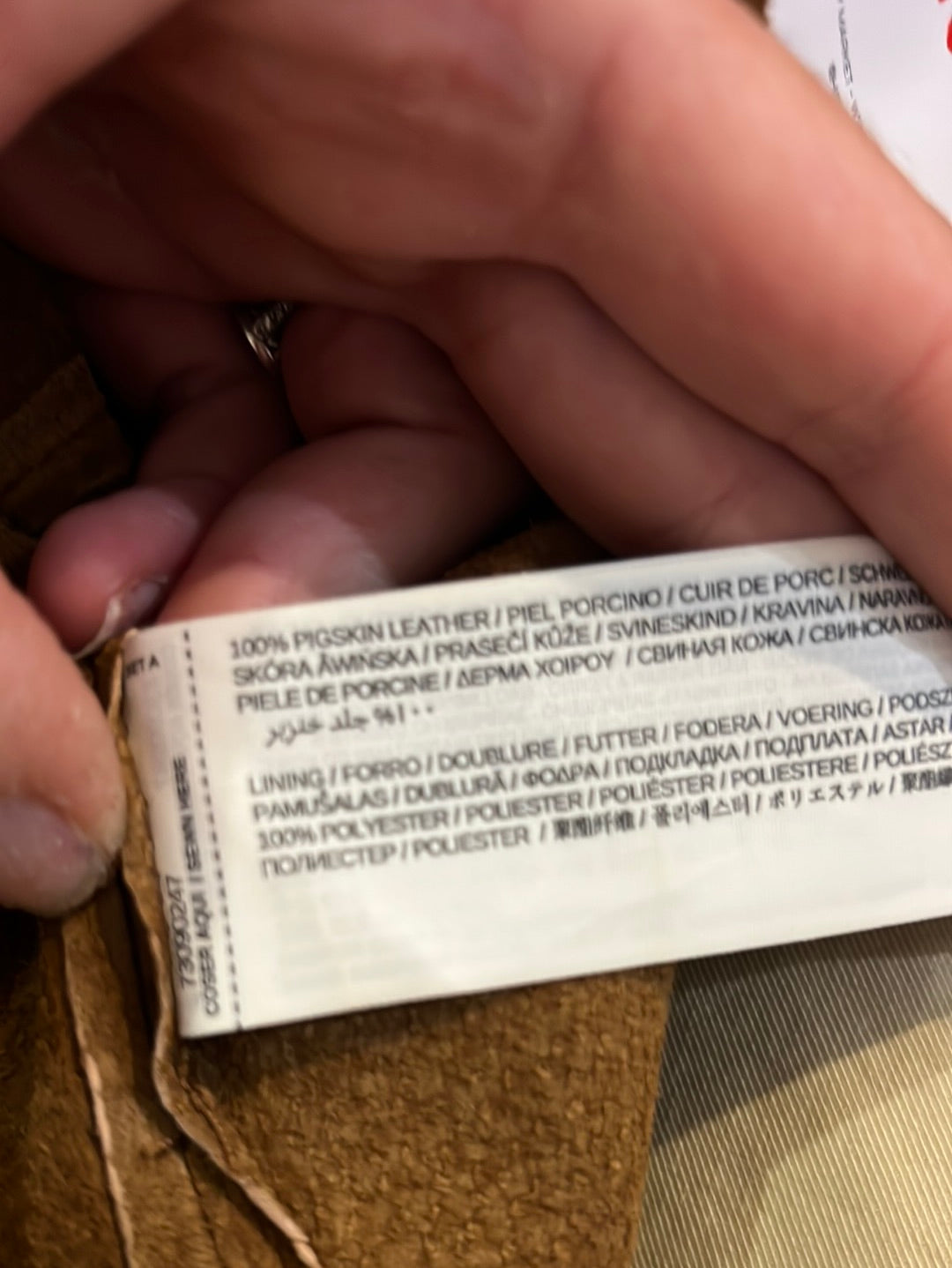 sobrecamisa camel 100% piel. entallada con botones clip. En etiqueta talla L