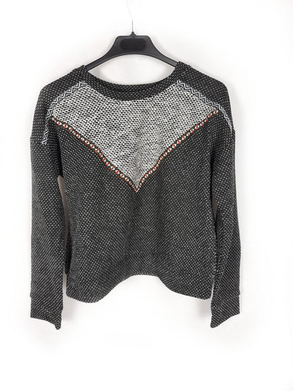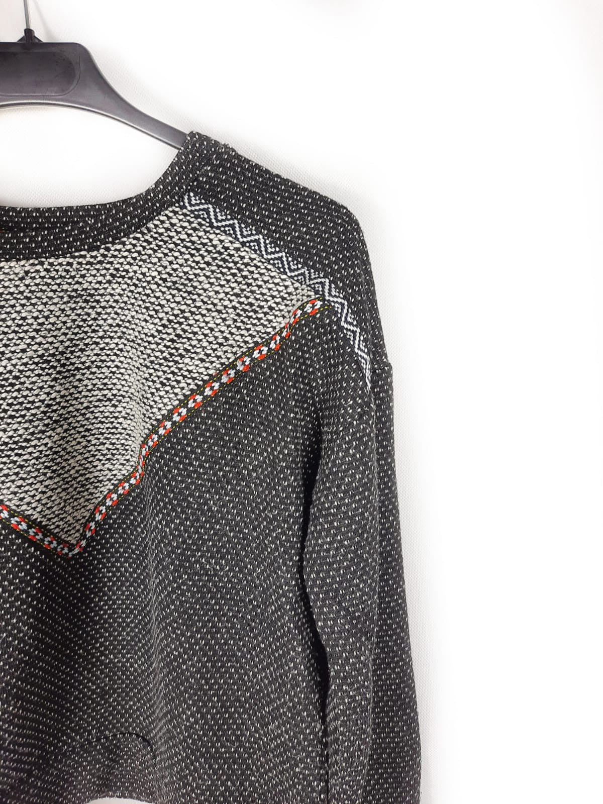 Sudadera negra con topitos blancos y detalle étnicos. Es elástica. De sisa a sisa 50 cm largo 52 cm
