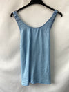 Top denim fino con los tirantes cruzados y la espalda baja.