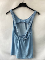 MANGO.Top azul denim fluido espalda cruzada T.L