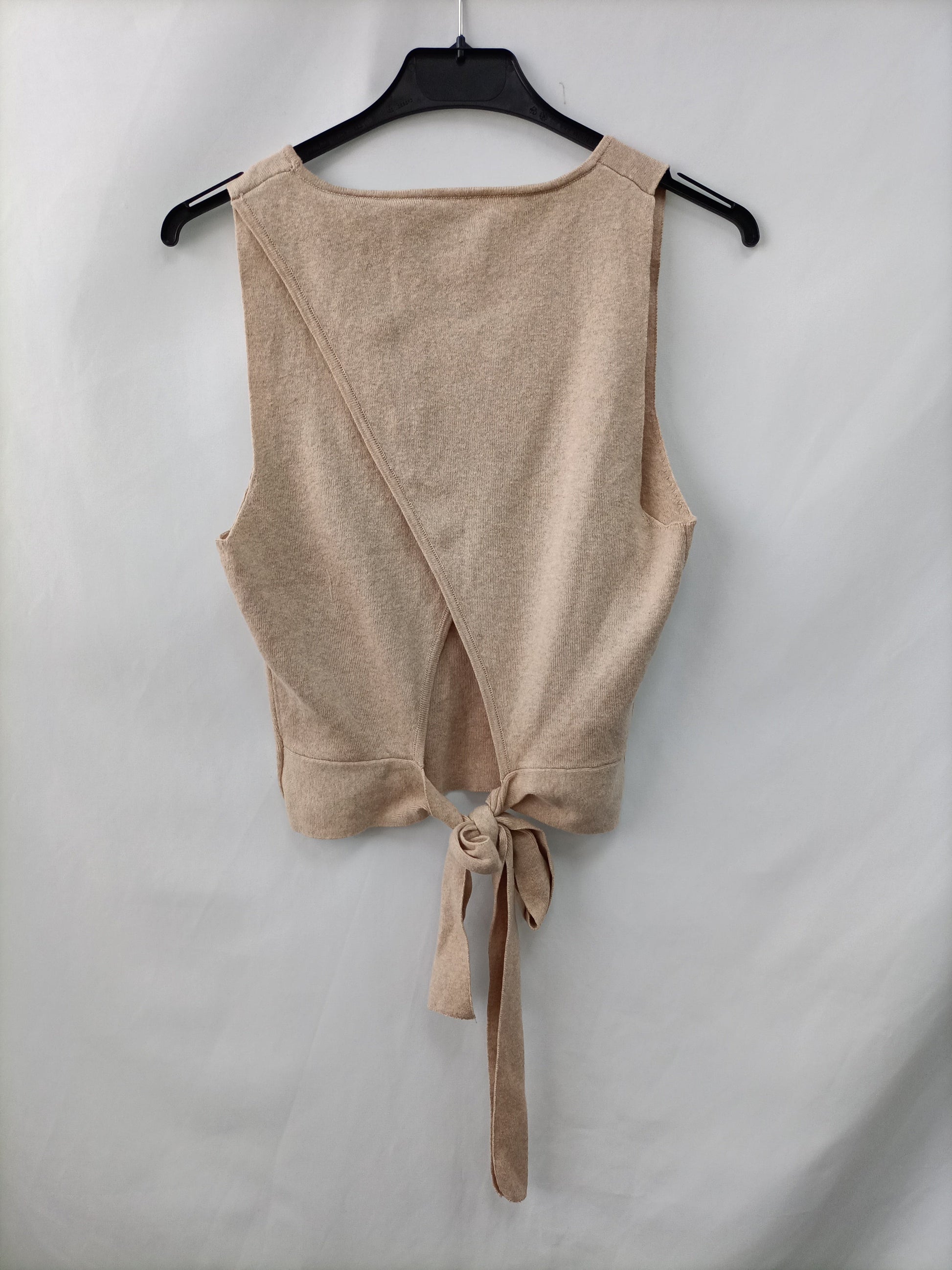 Top beige de algodón con las espalda cruzada con lazada. elástico. Largo cm