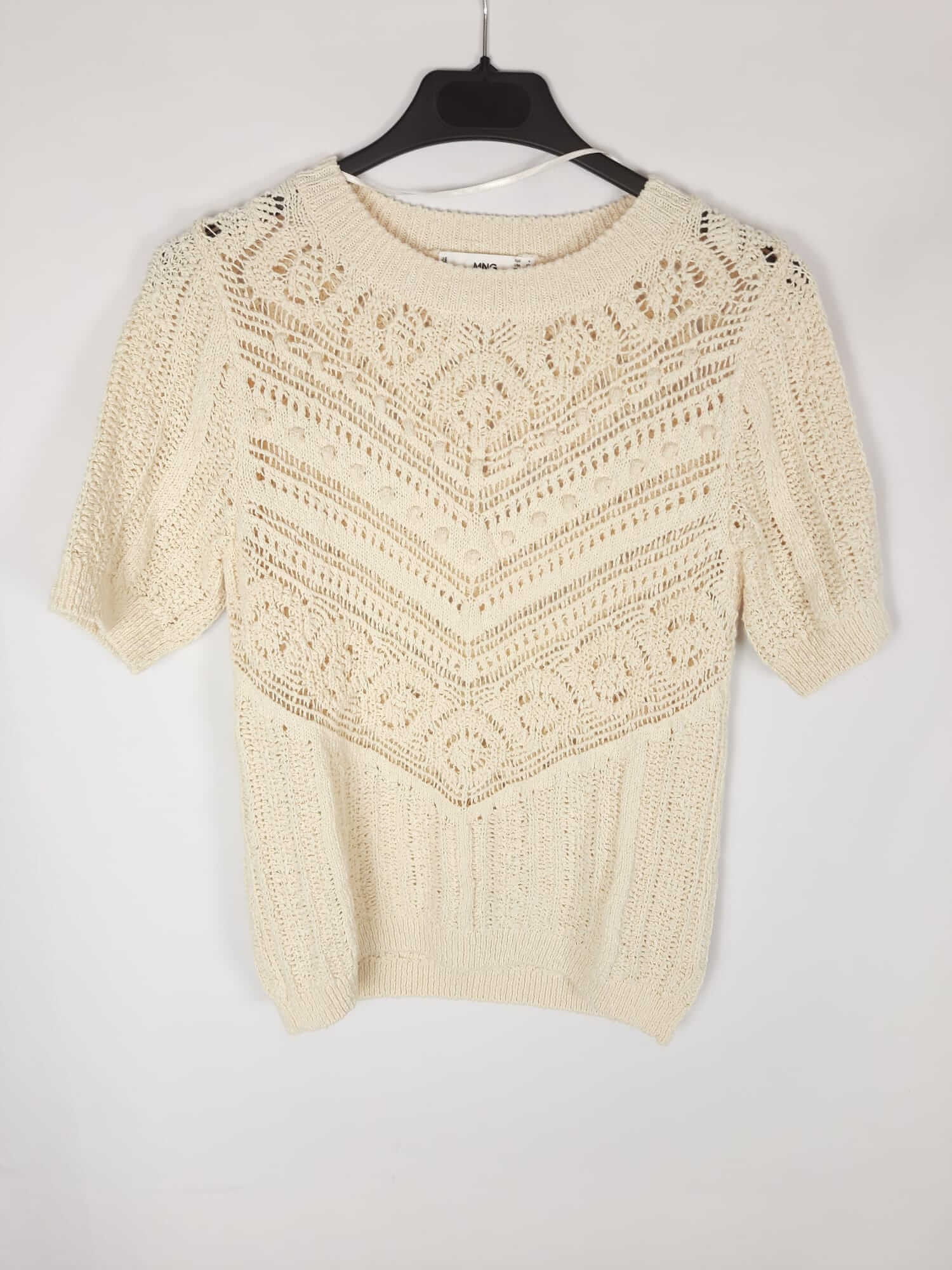 Mango. Top beoge de croché. Elástico. Largo 56 cm