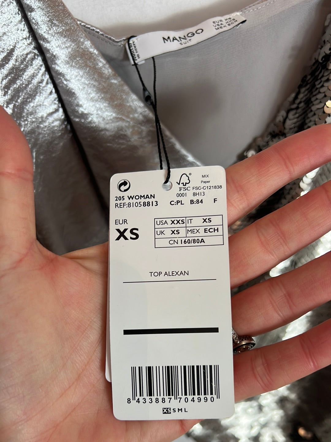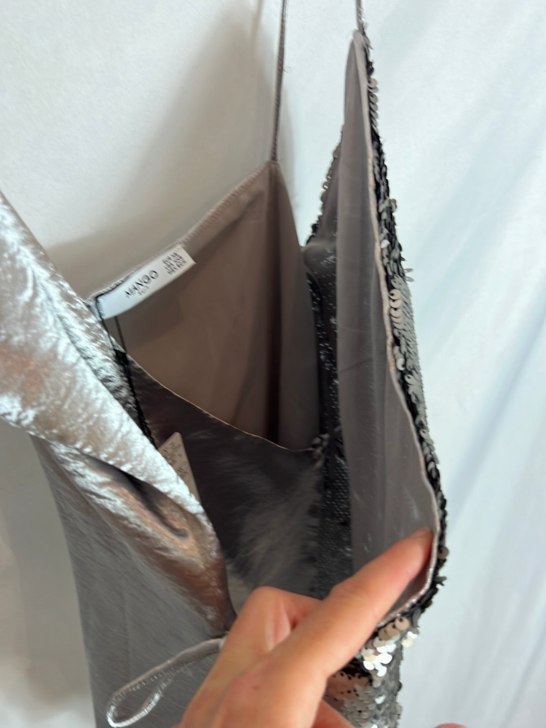 NUEVO CON ETIQUETA. top doble textura con lentejuelas. Cruzado . Largo espalda 51cm