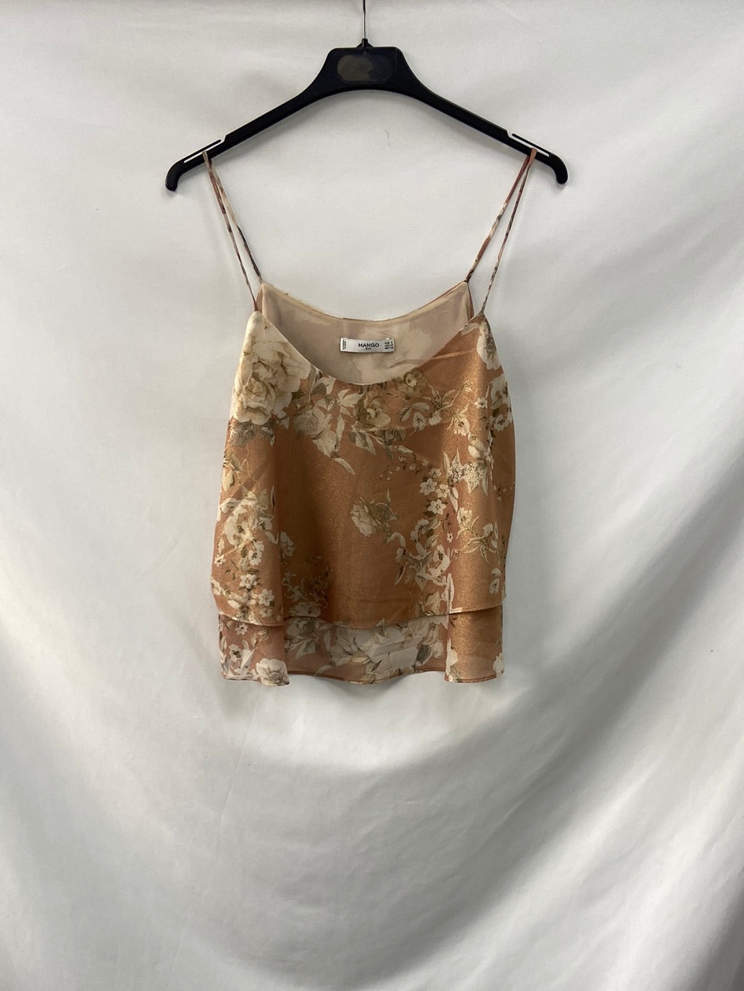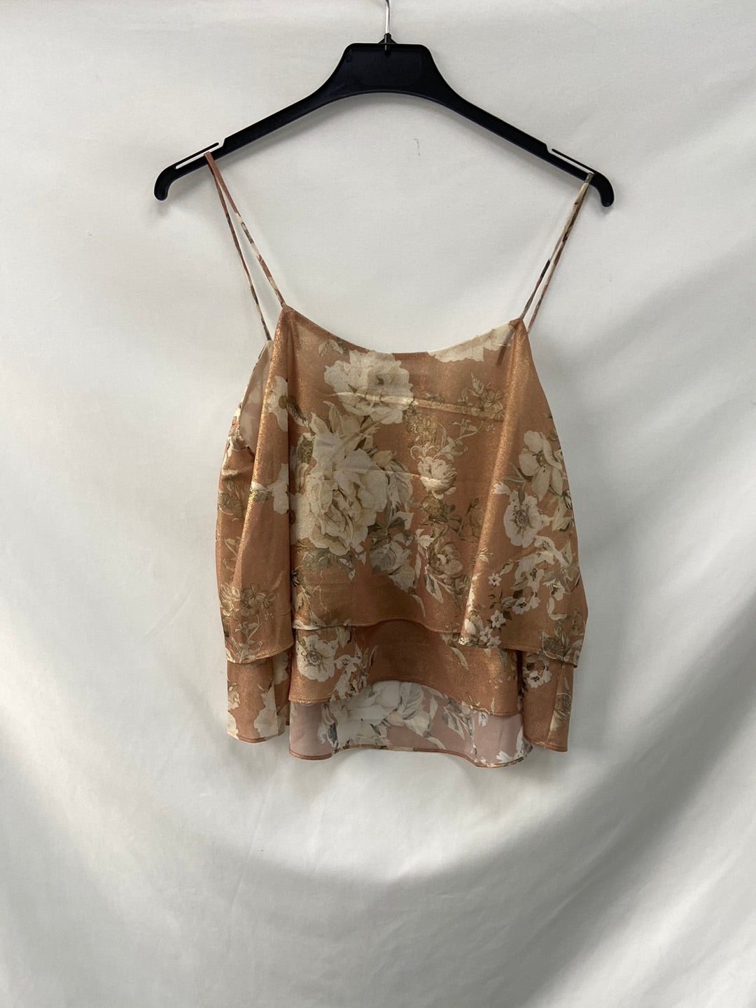 Top tirantes nude flores con detalle de hilos dorados.