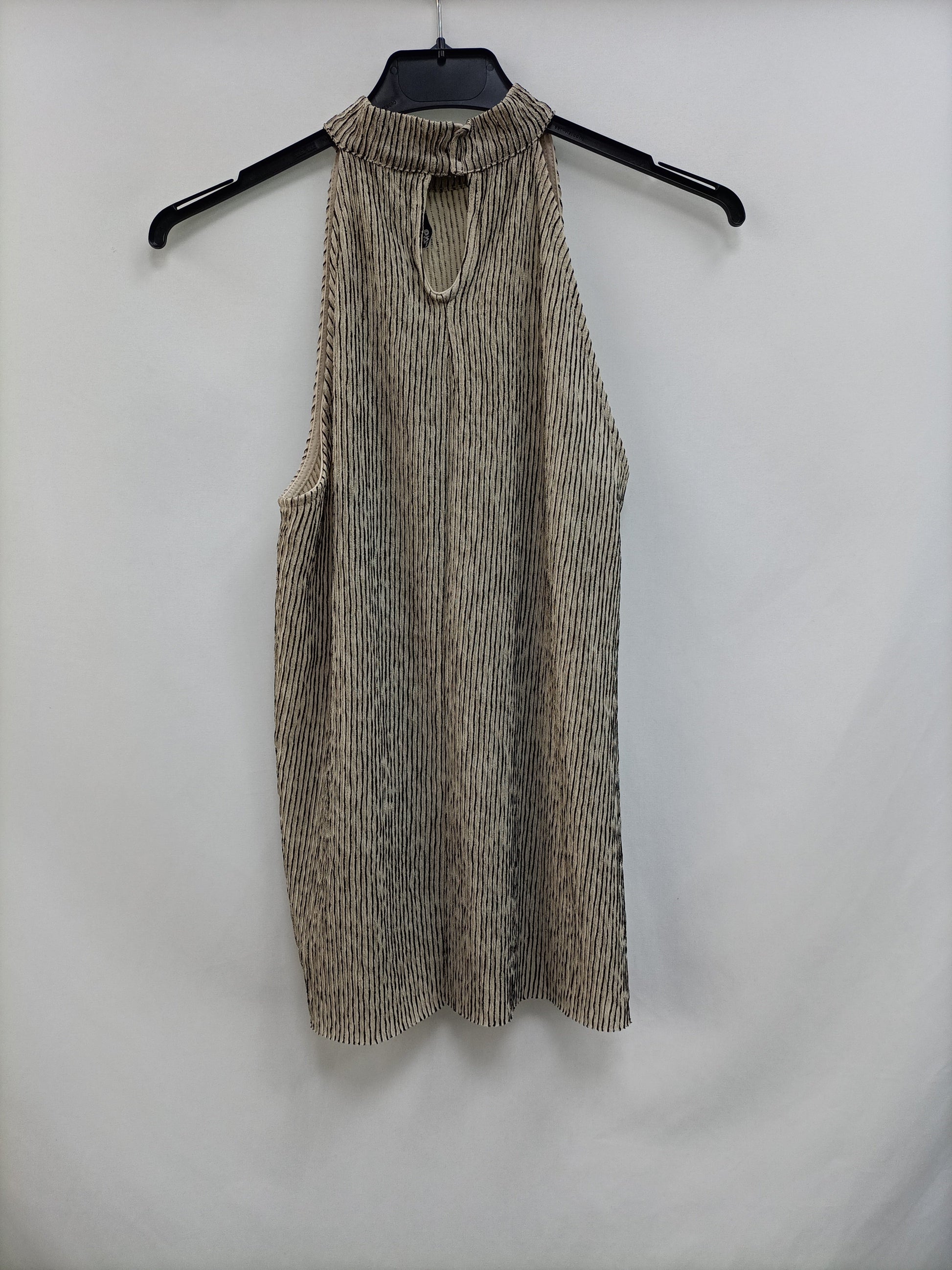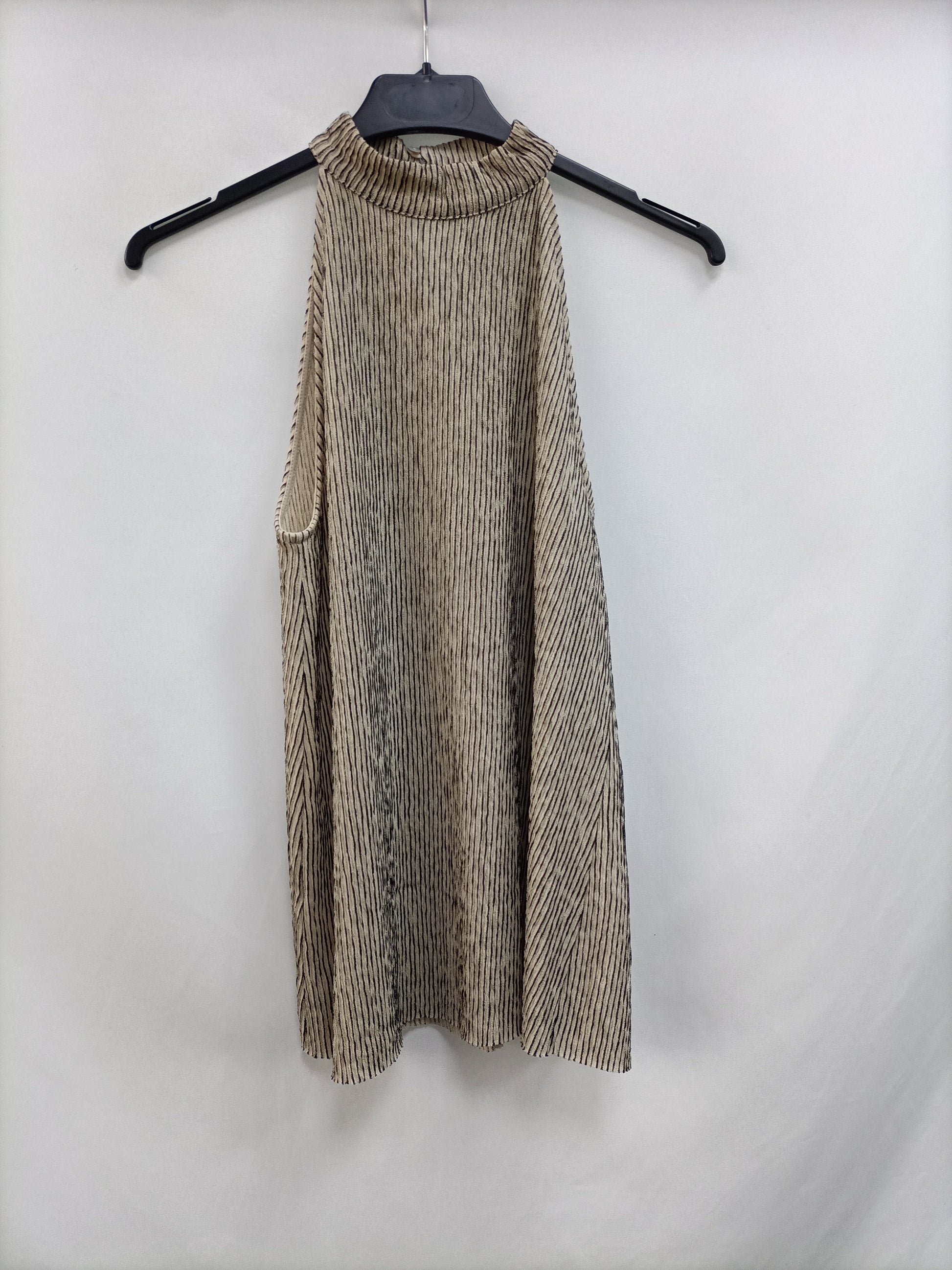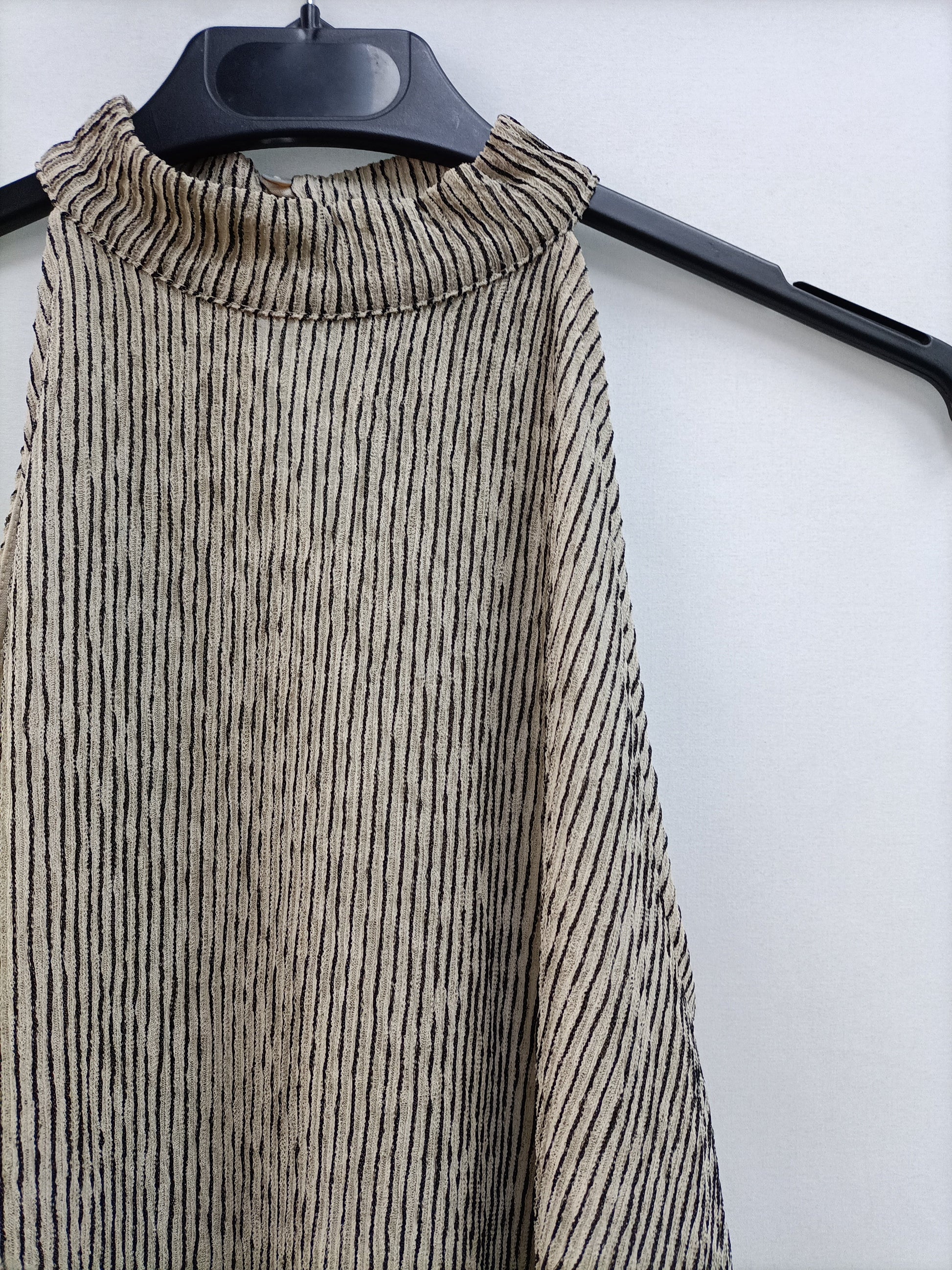 Top de rayas beige y negro con textura. Elastico. Largo 64 cm
