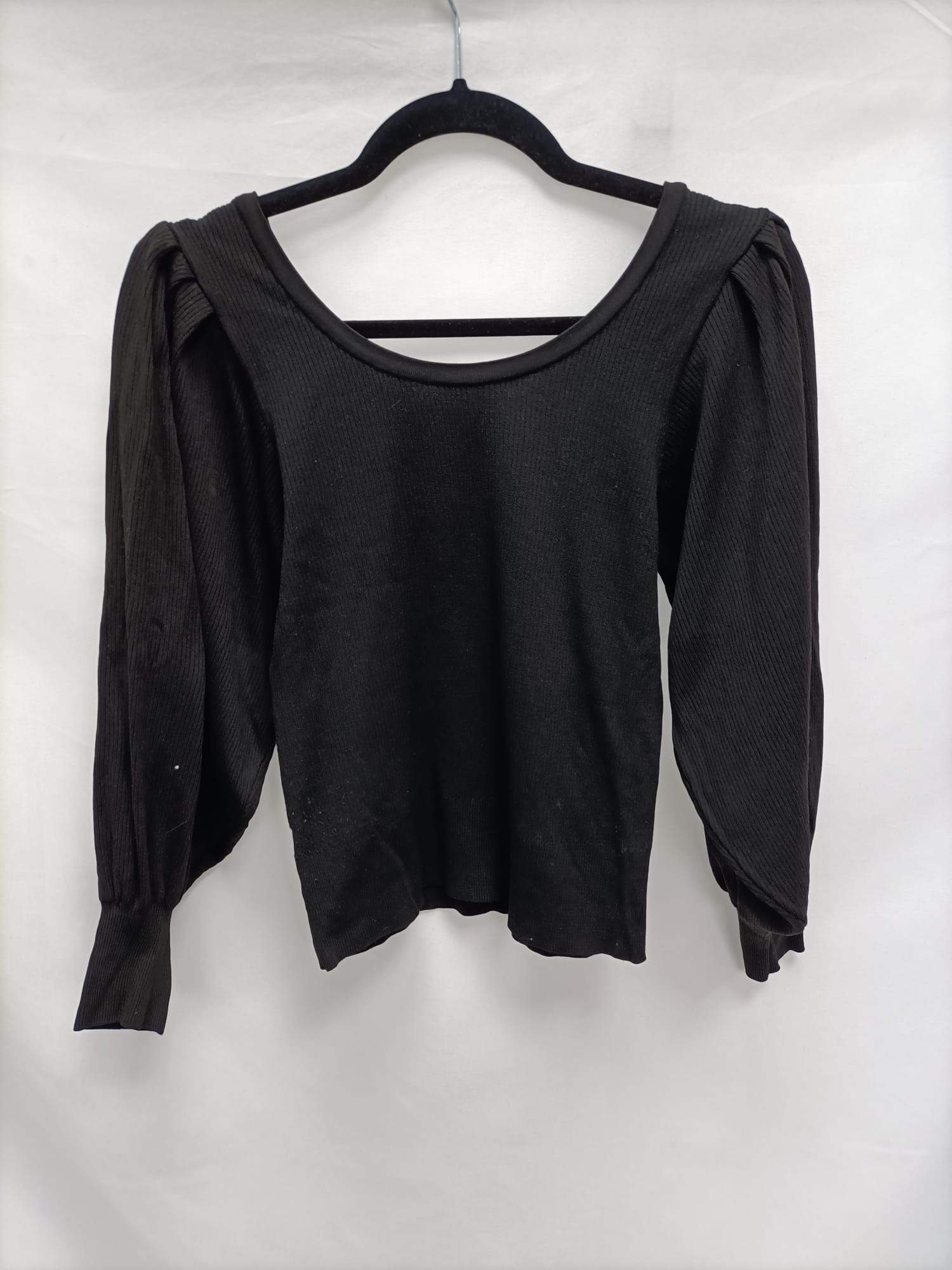 MarKetMANGO.Top/jersey negro canalé mangas abullonadas T.m