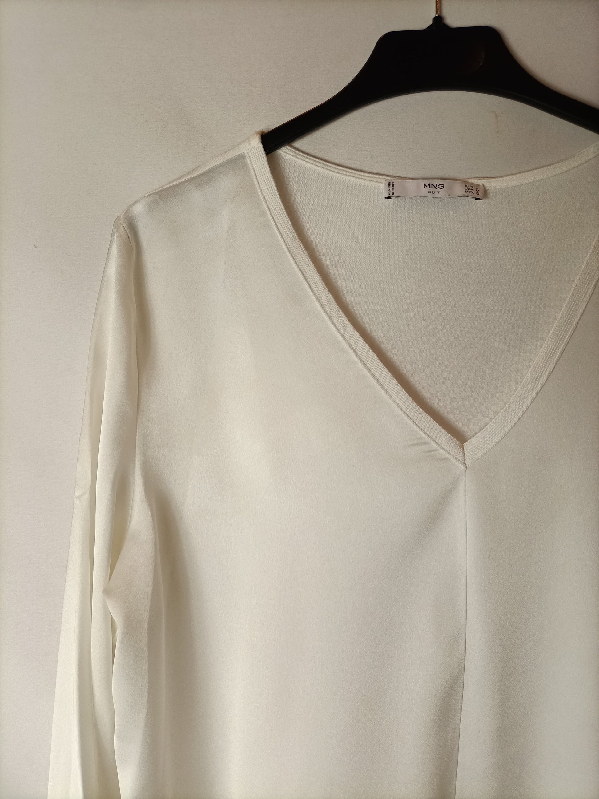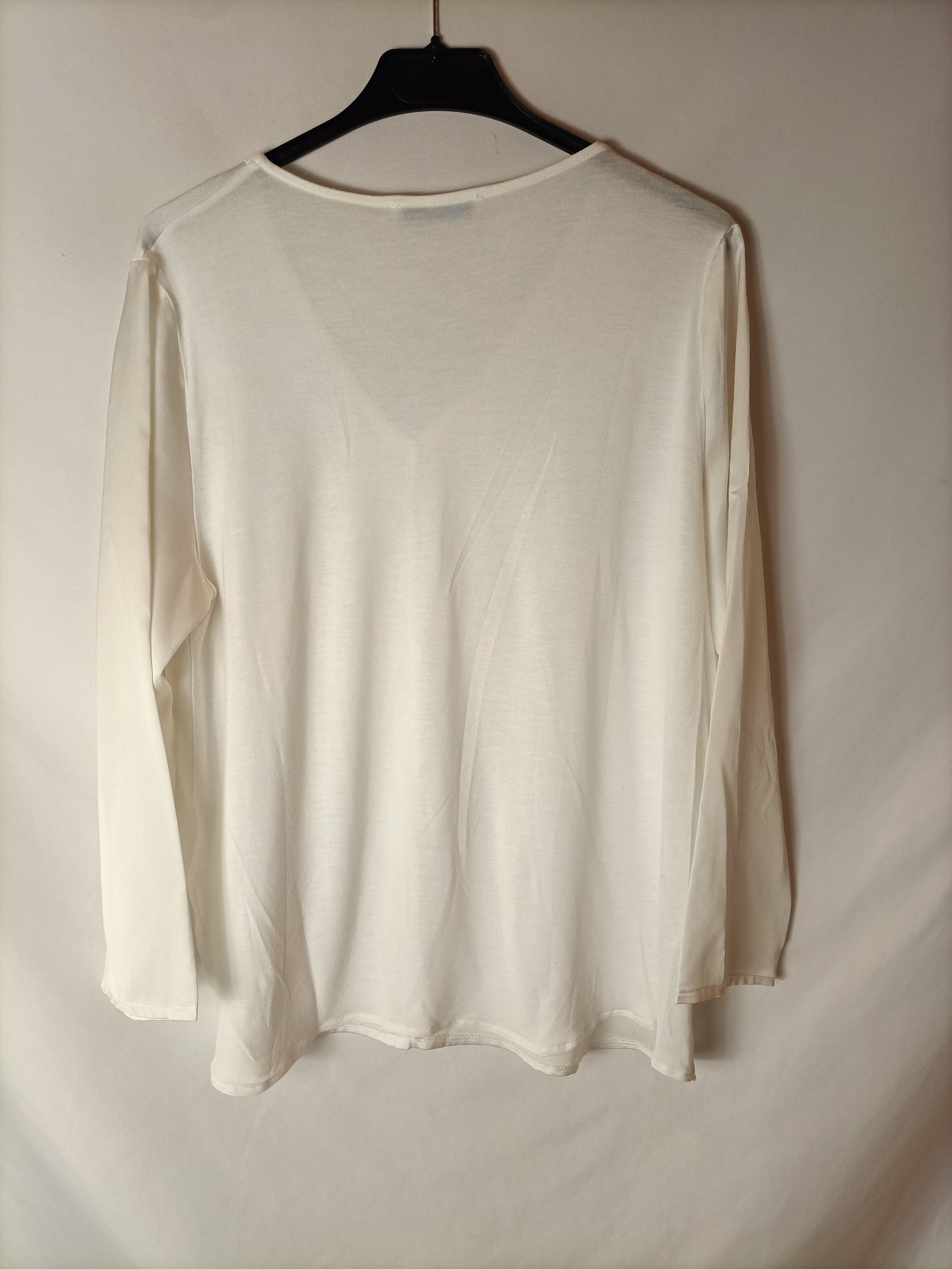 Top manga larga blanco satinado. Doble textura. T ejido semi elástico en la espalda