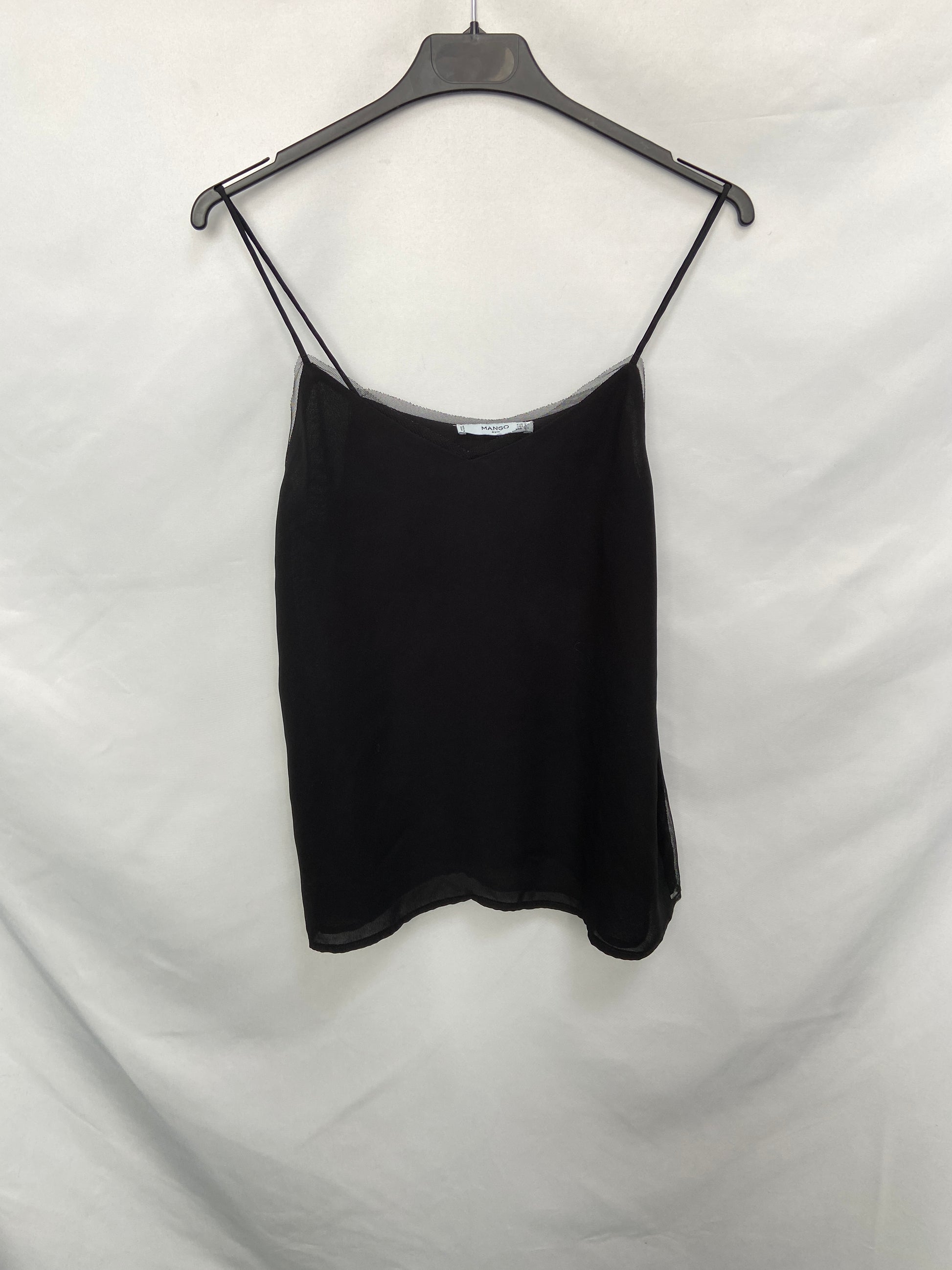 Top negro de tirantes fluido. No elástico. Estilo lencero.