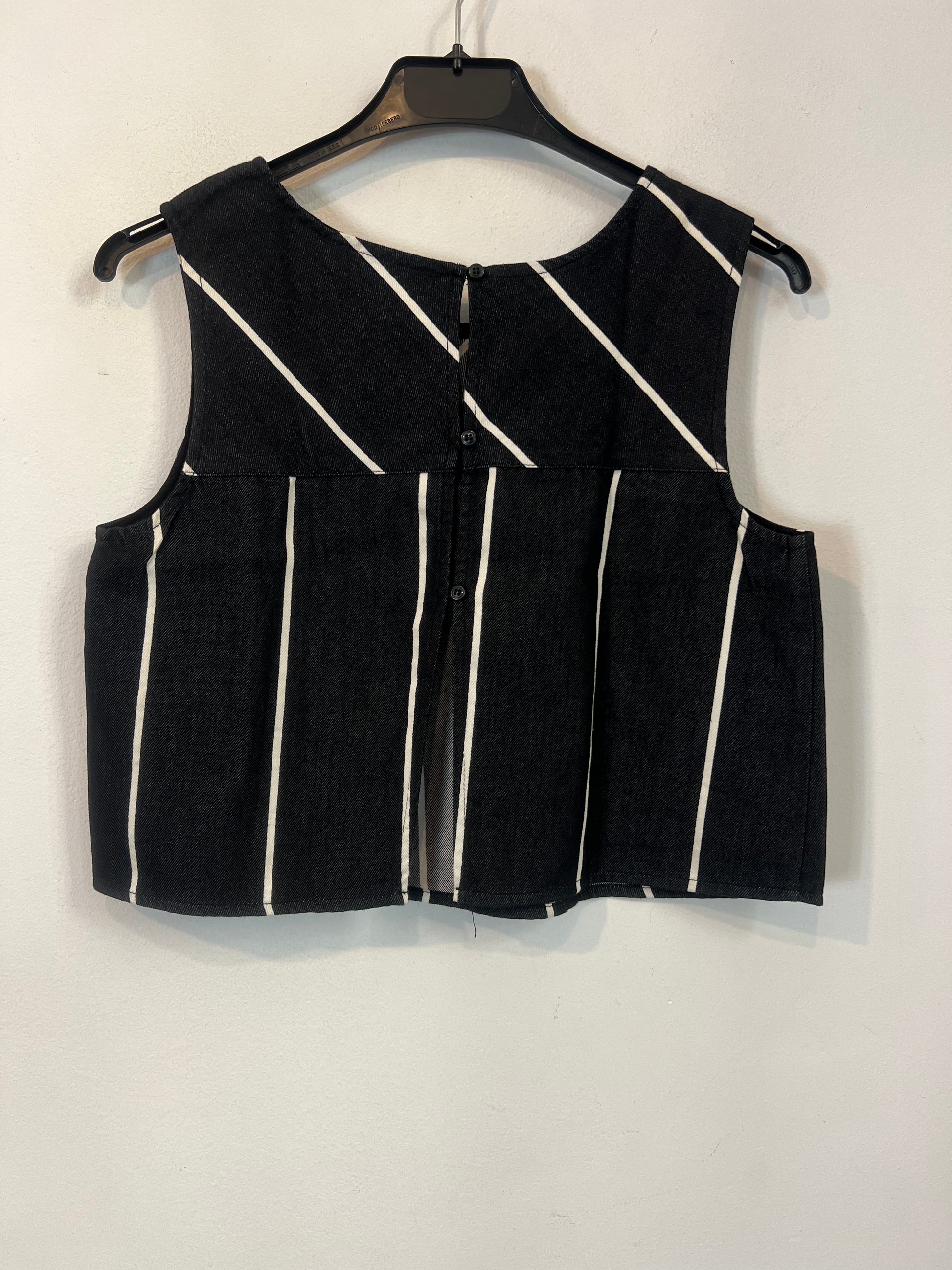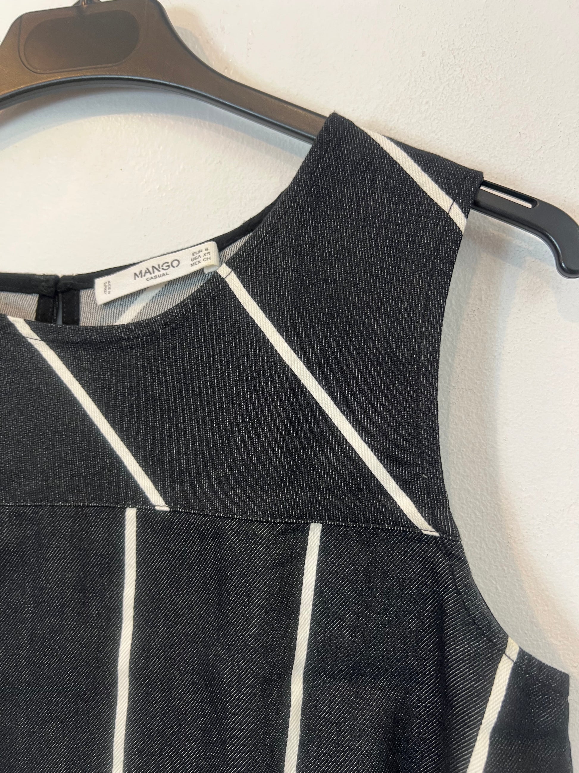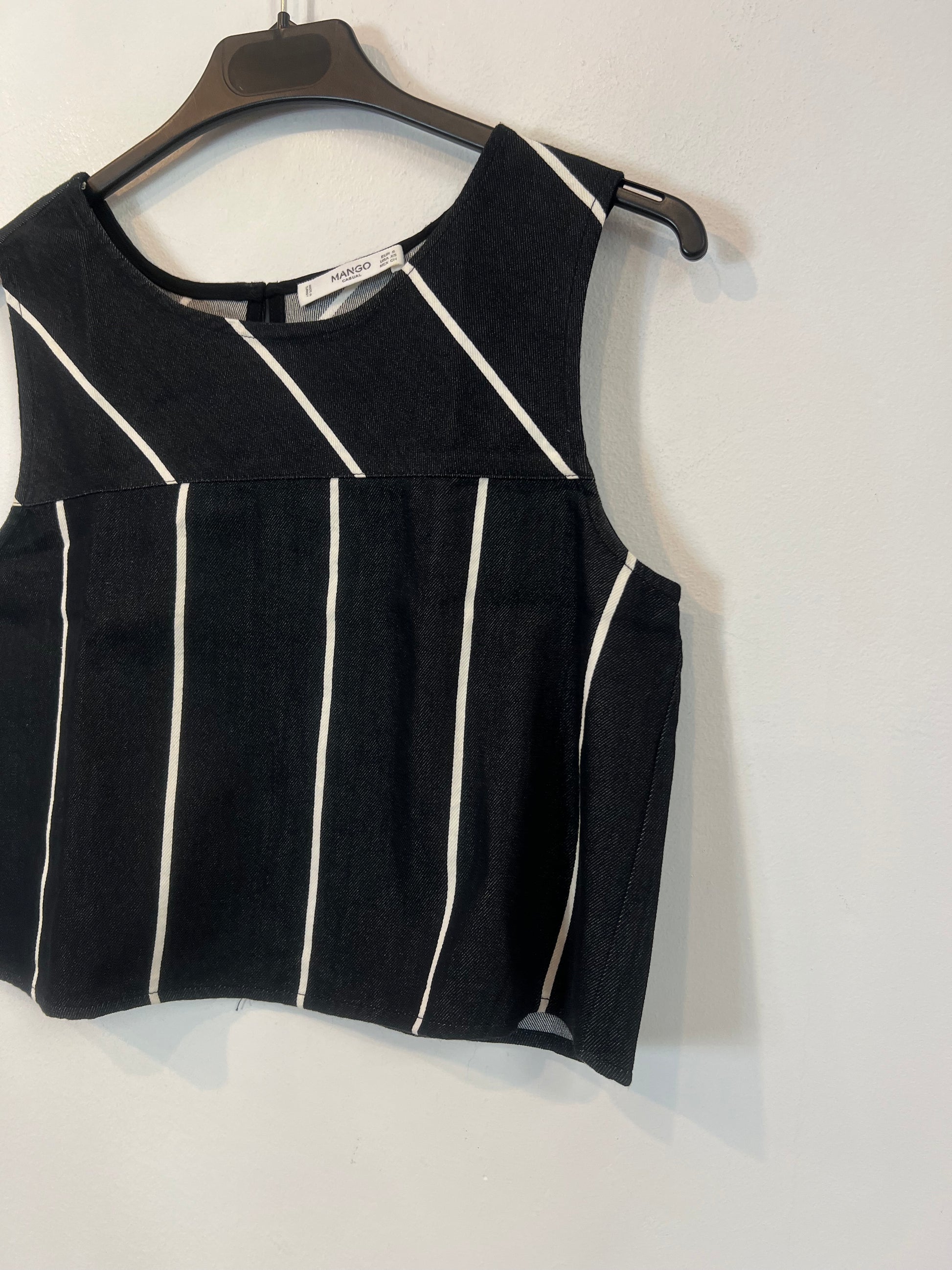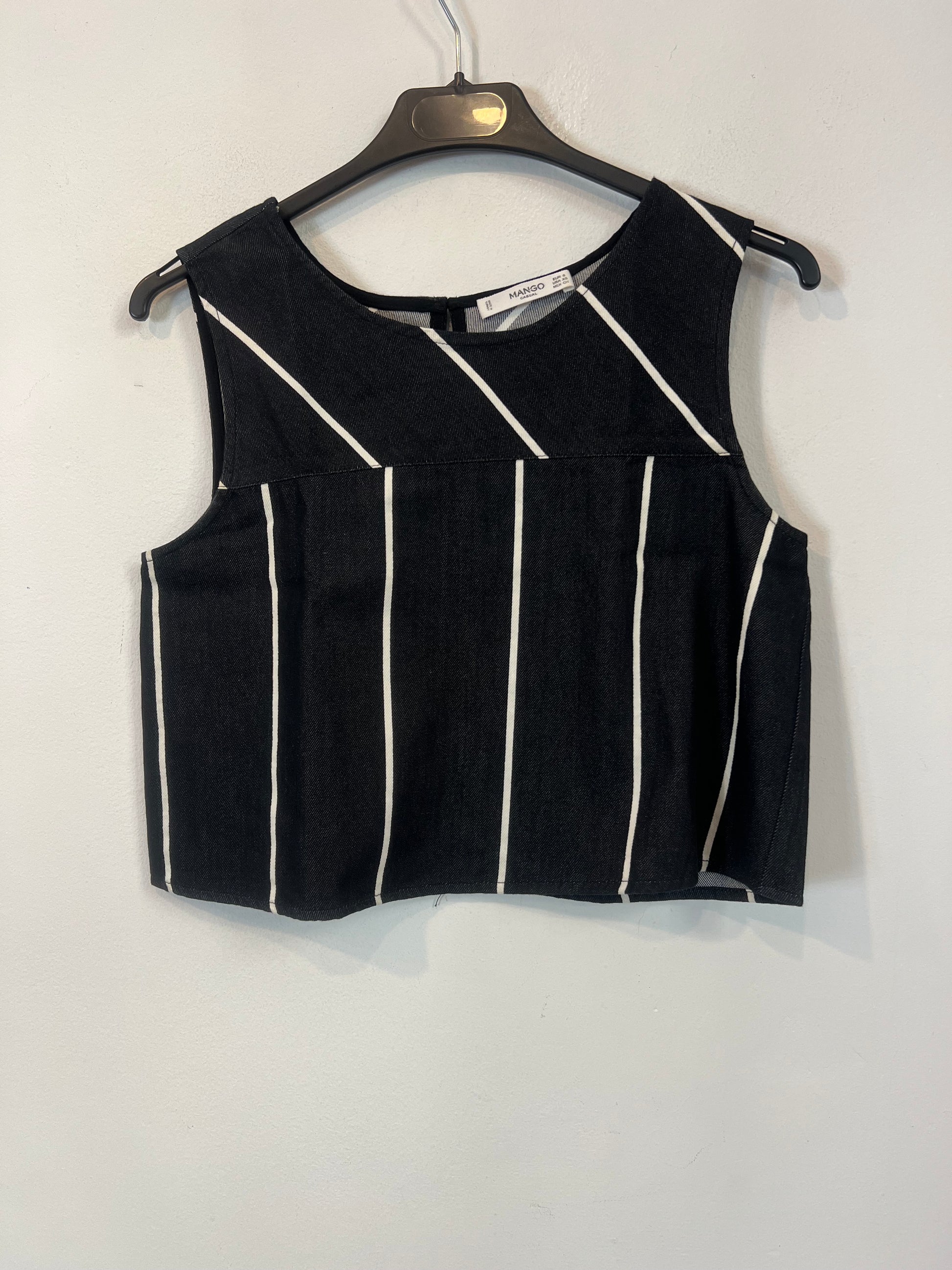 MANGO. Top negro rayas T.s