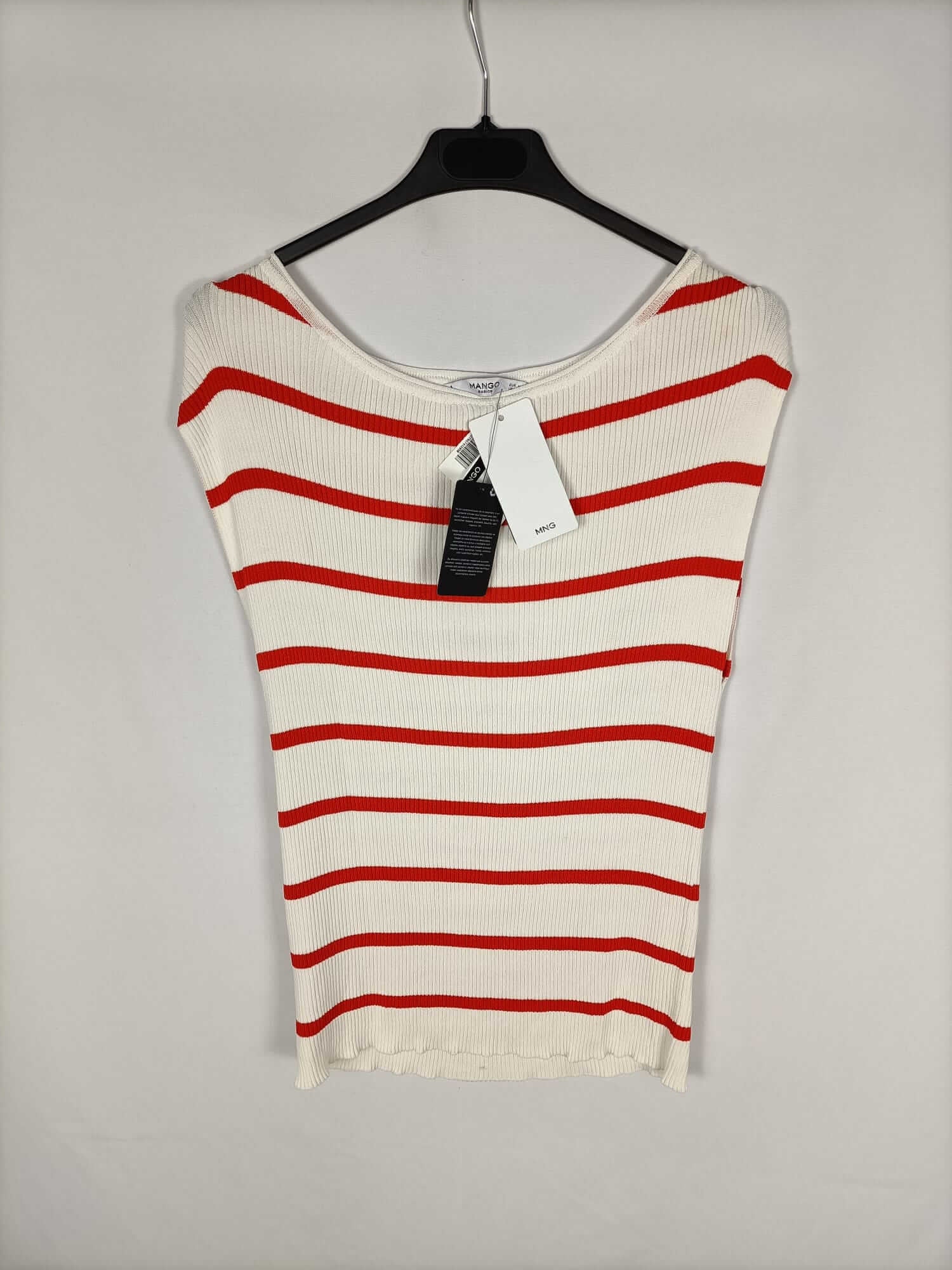Mango. NUEVO CON ETIQUETA. Top beige de punto con rayas rojas. Elástico. Largo 64 cm