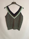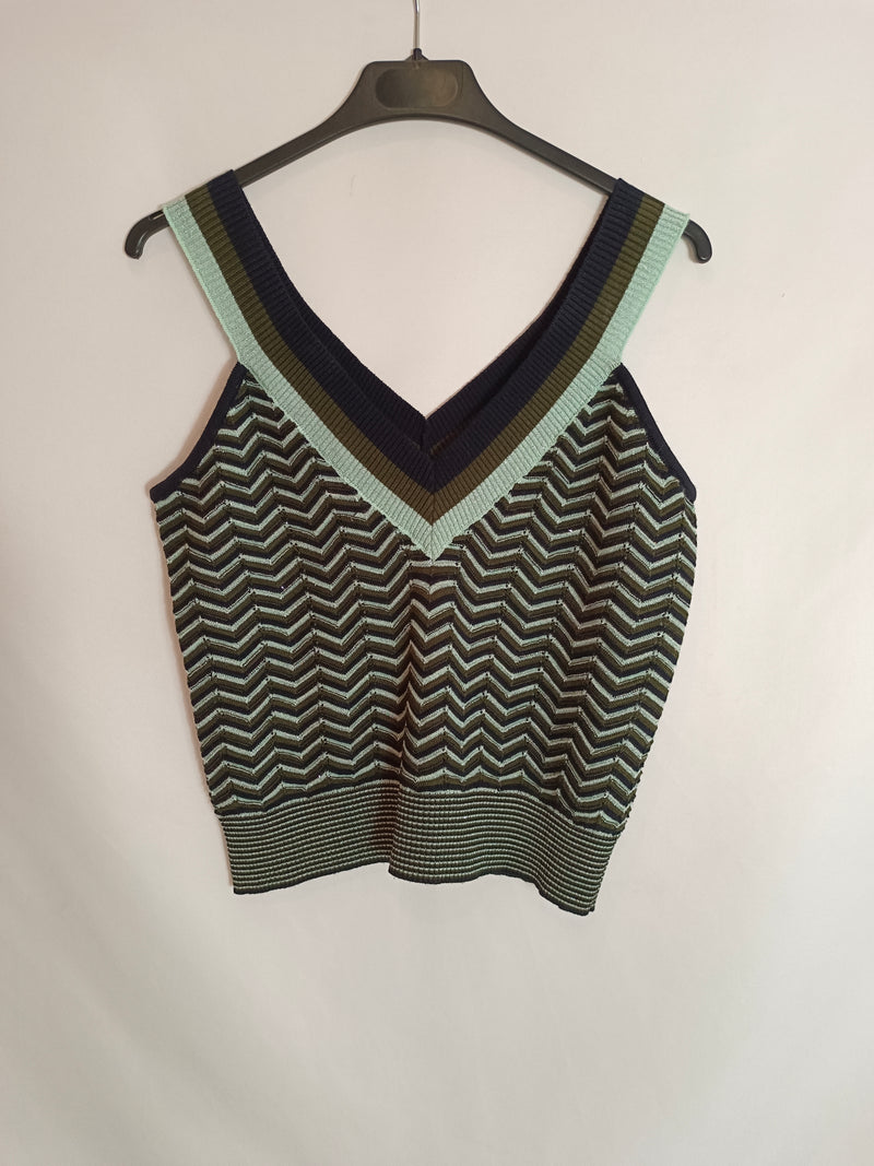 Top de punto con rayas verdes, negras y azules y con de hilos metálicos