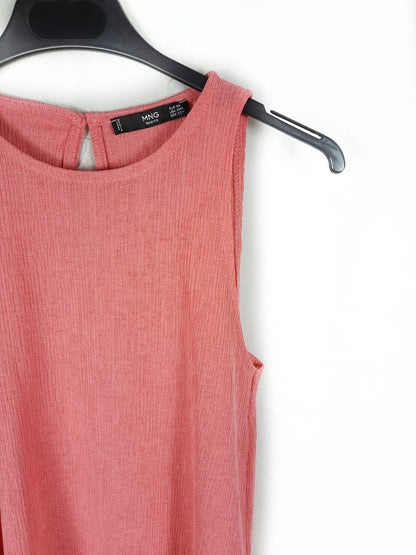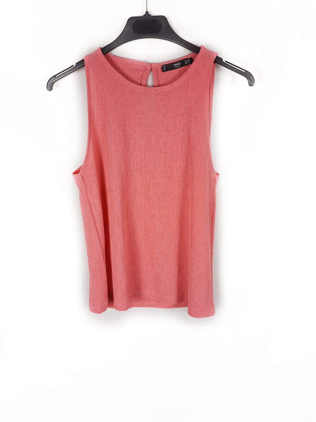 Top rosa fucsia de tejido de punto de canalé. Es fluido y elástico. Largo 55 cm