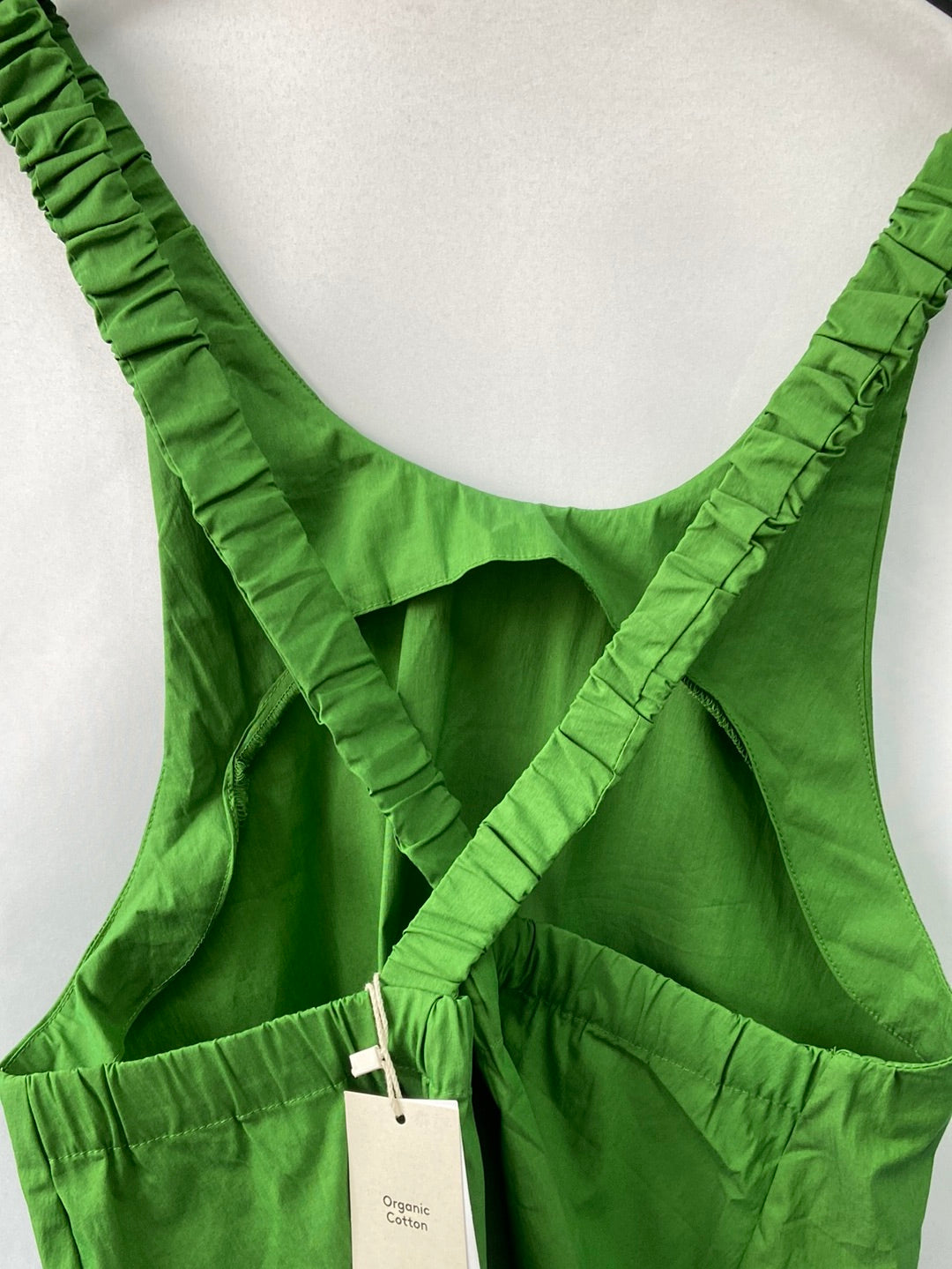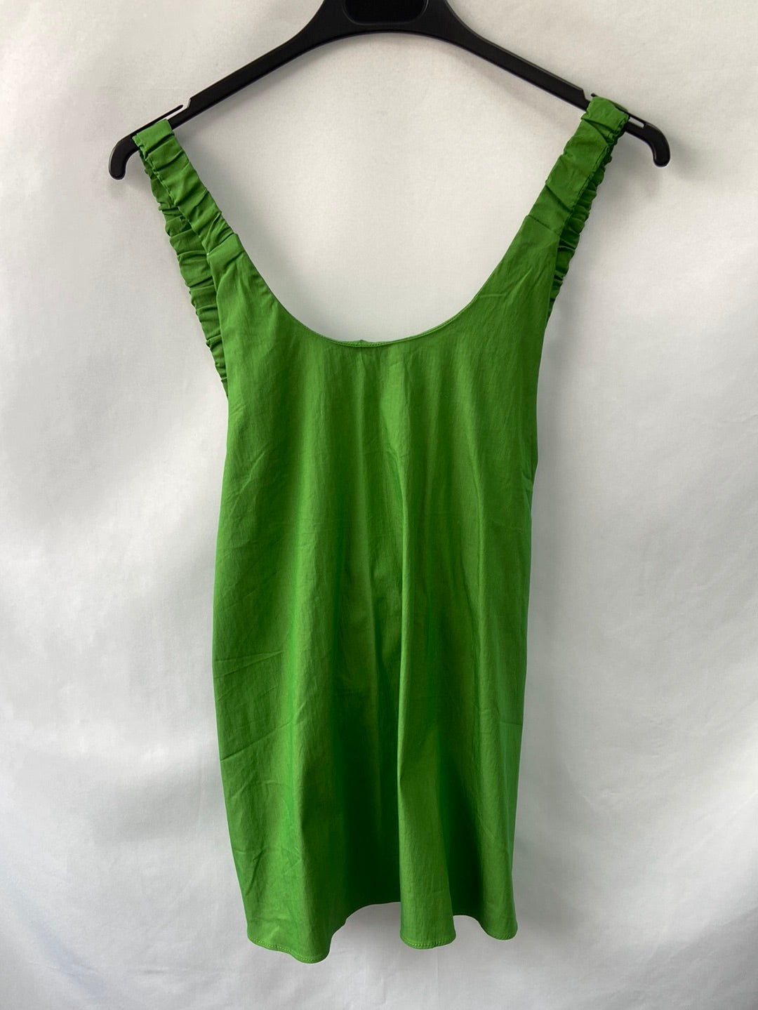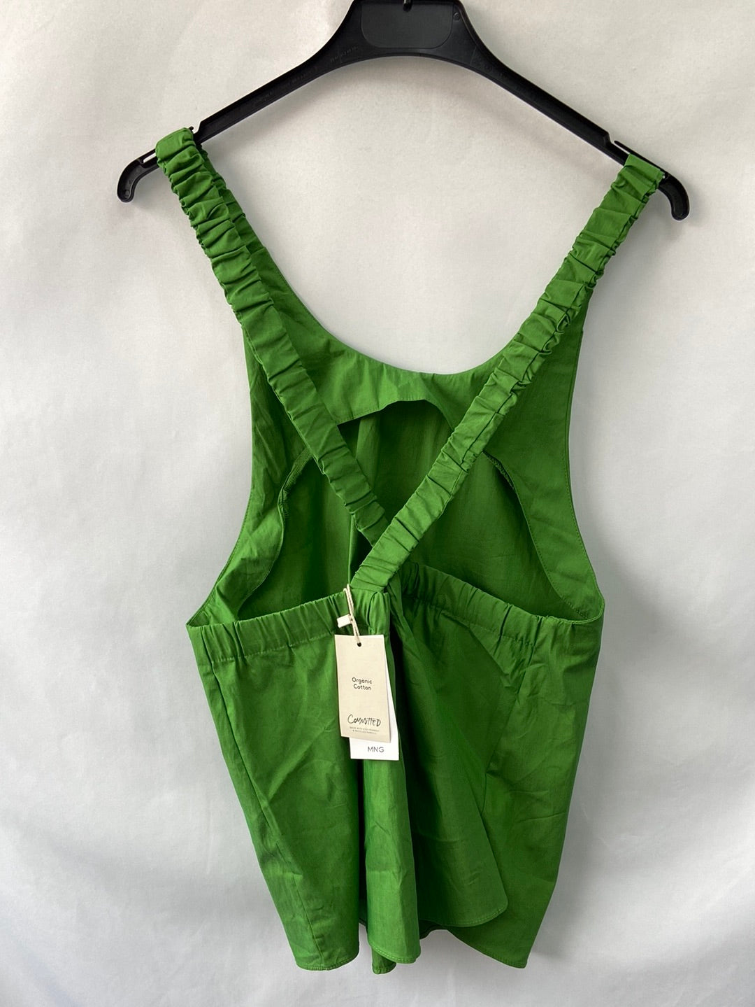 NUEVO CON ETIQUETA . Top verde con los tirantes cruzados y la espalda baja.