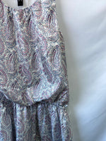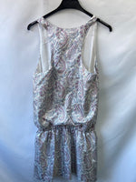 vestido estampado amebas tejido tipo raso con forro interior. Corte elástico en la cintura. Largo 93 m