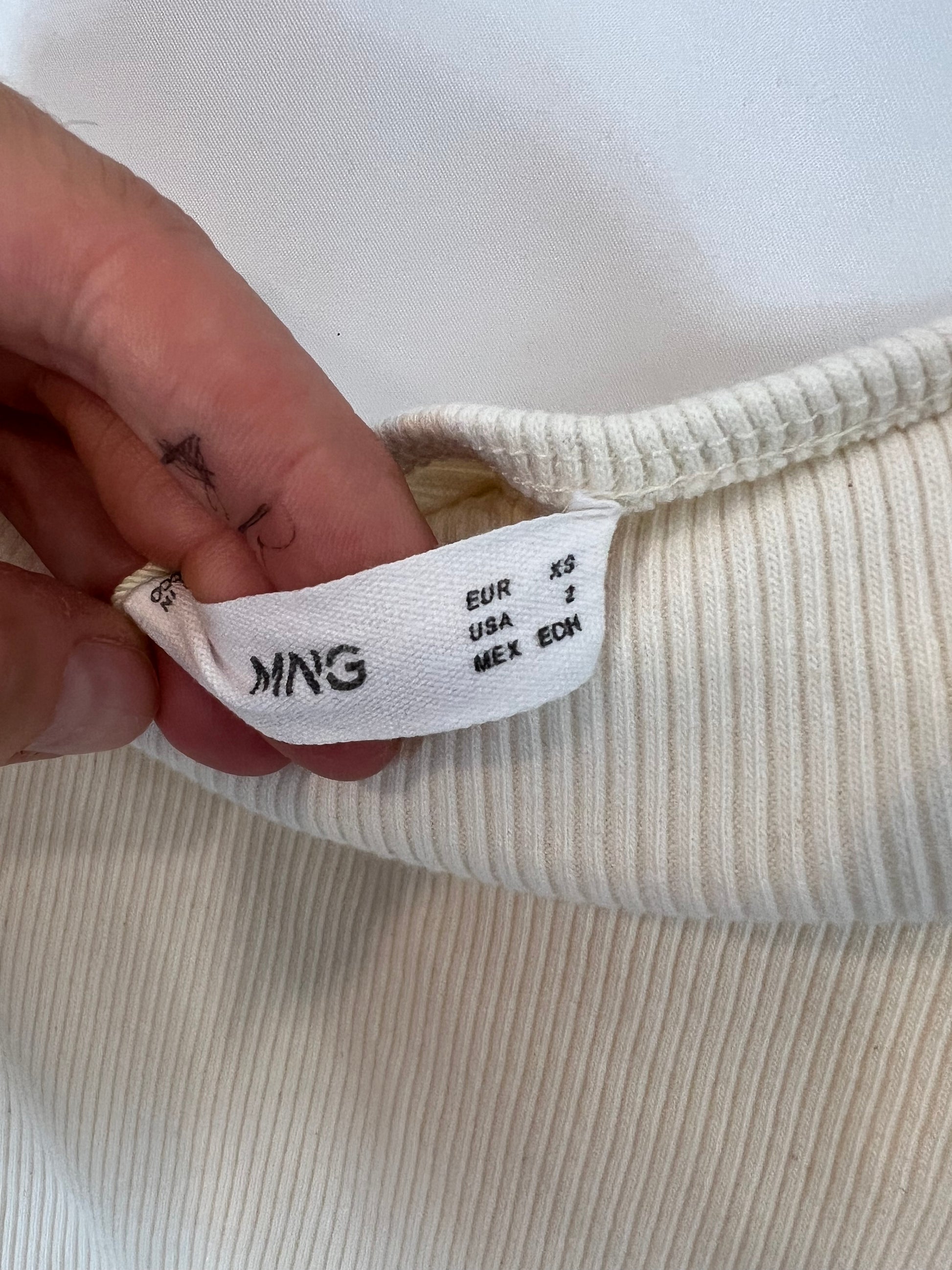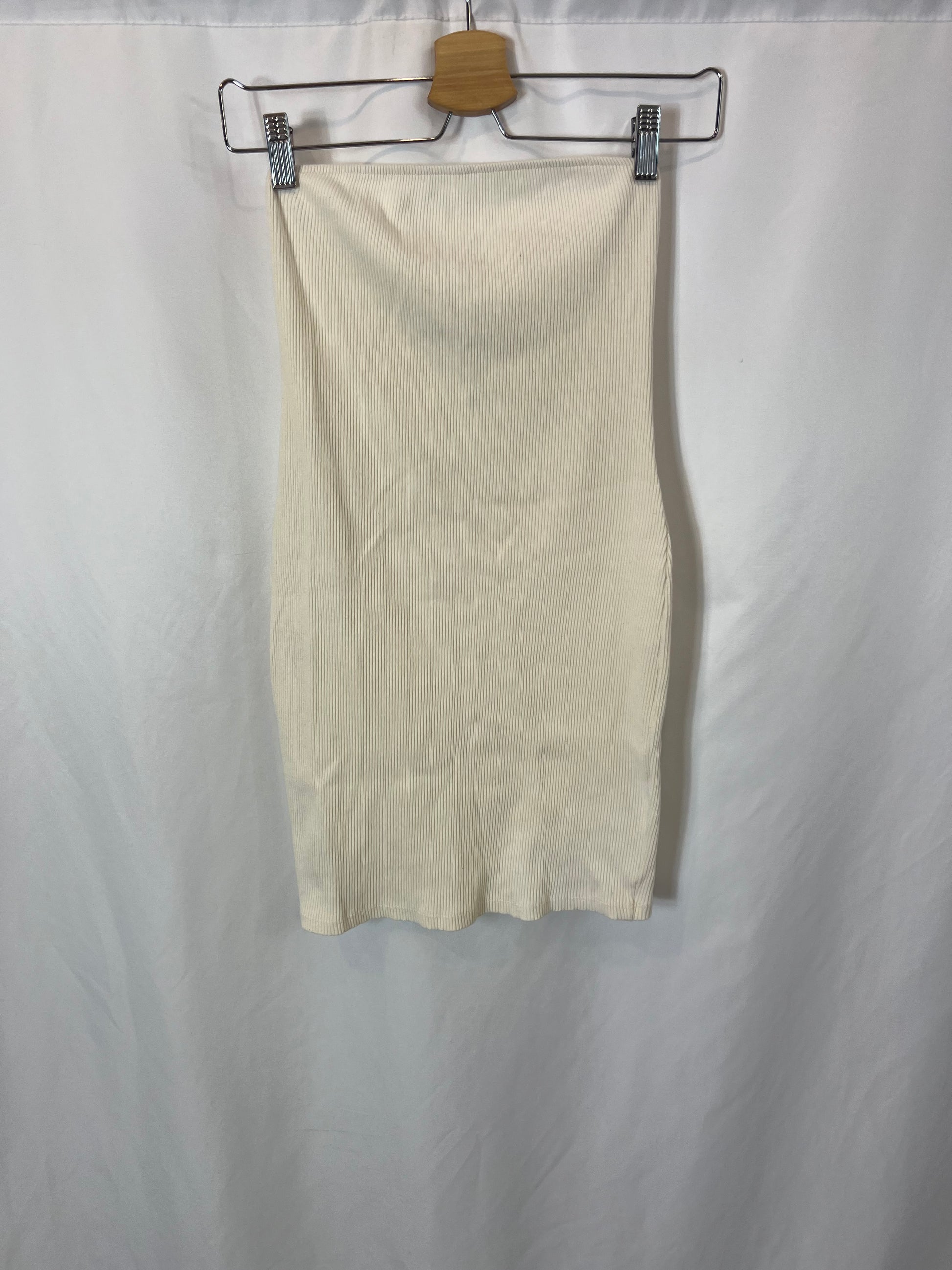 vestido corto blanco roto de canalé palabra de honor . Largo 60cm