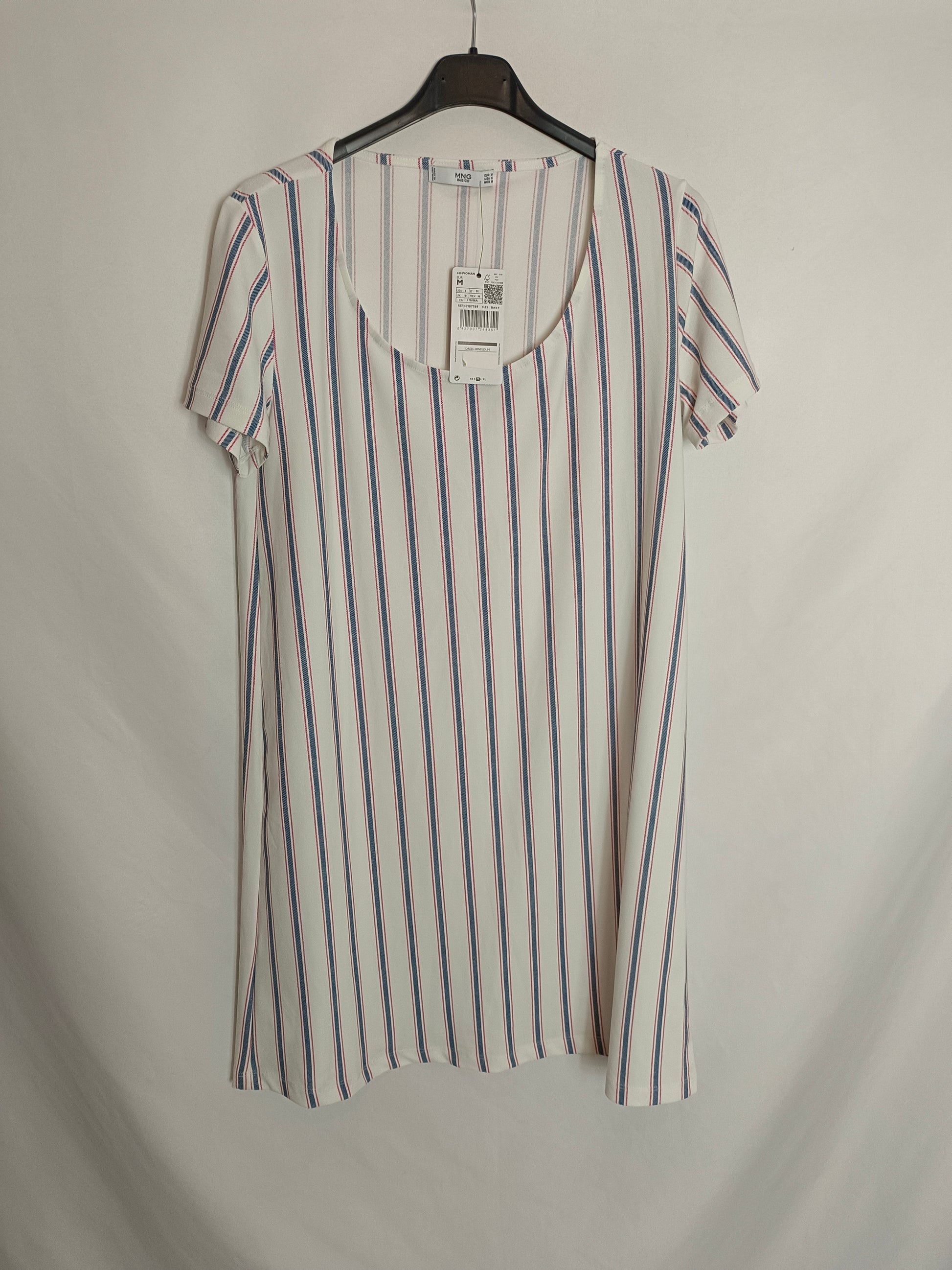 NUEVO CON ETIQUETA. Vestido blanco elástico con rayas. largo 75 cm