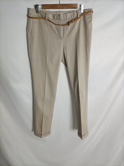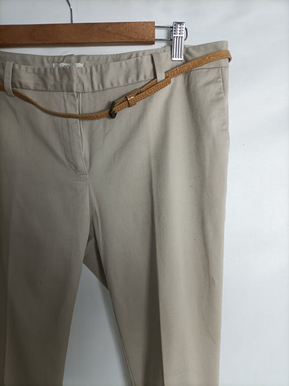 Pantalones de pinza beige con cinturón. Cintura 43cm