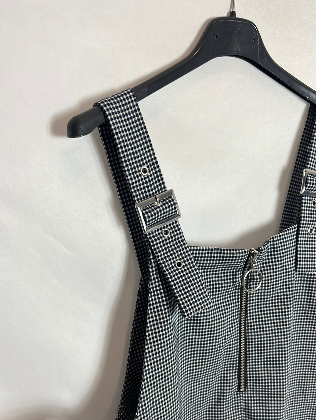vestido estilo peto negro y blanco de cuadros vichy. Largo 81 regulable de Susana sisa 49cm