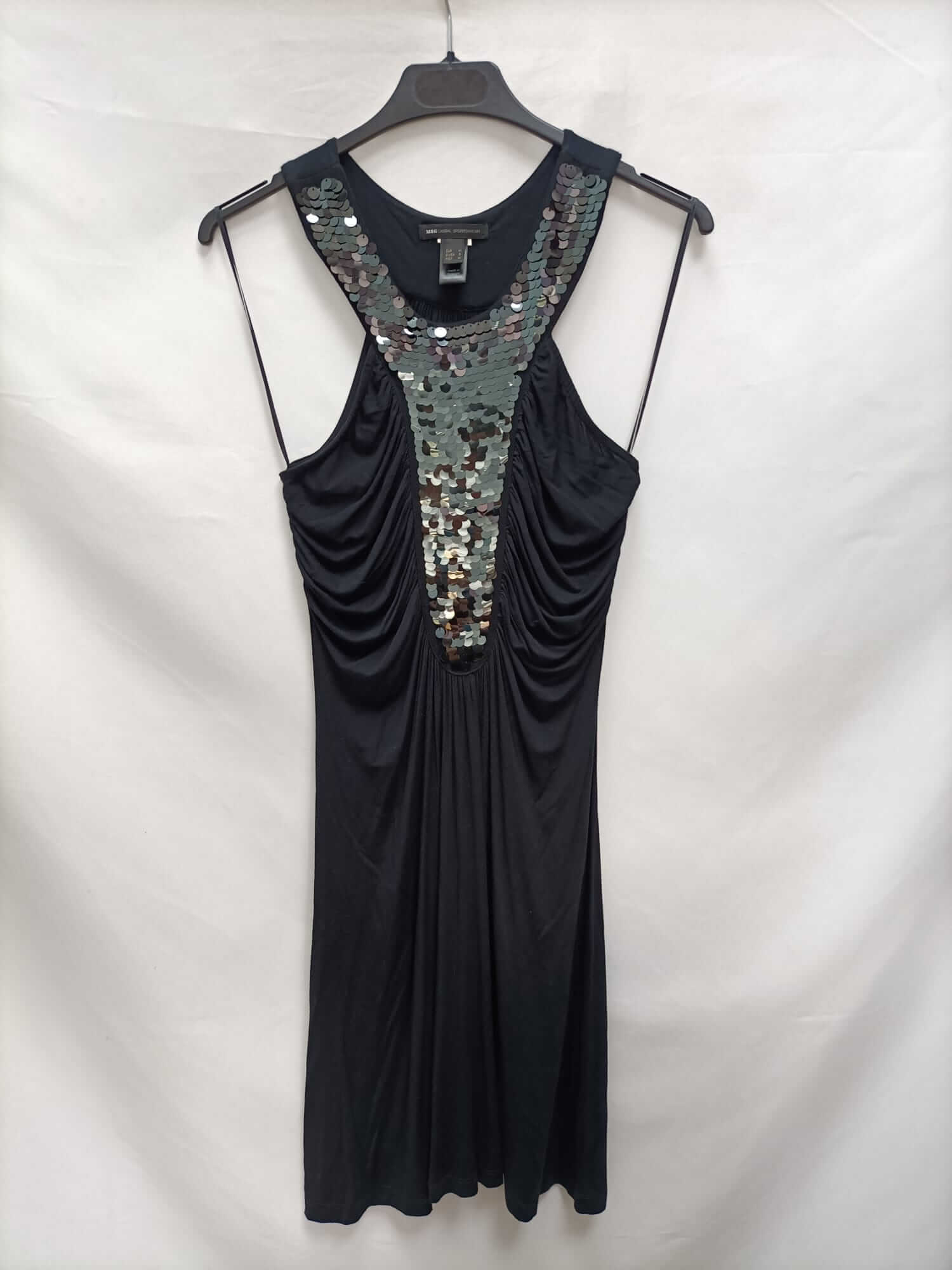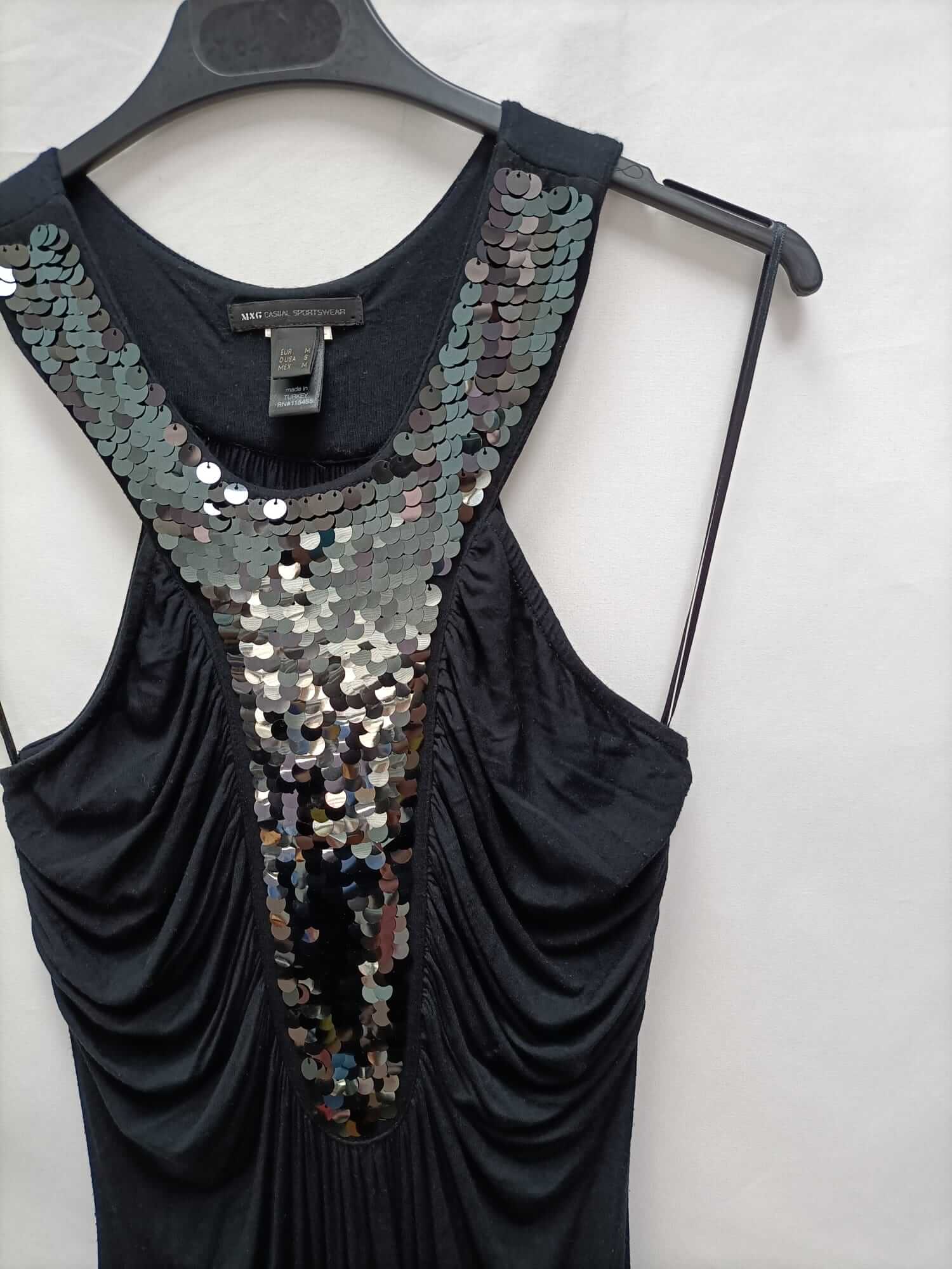 Mango. M. Vestido corto negro elástico con cuello de lentejuelas. Largo 88 cm