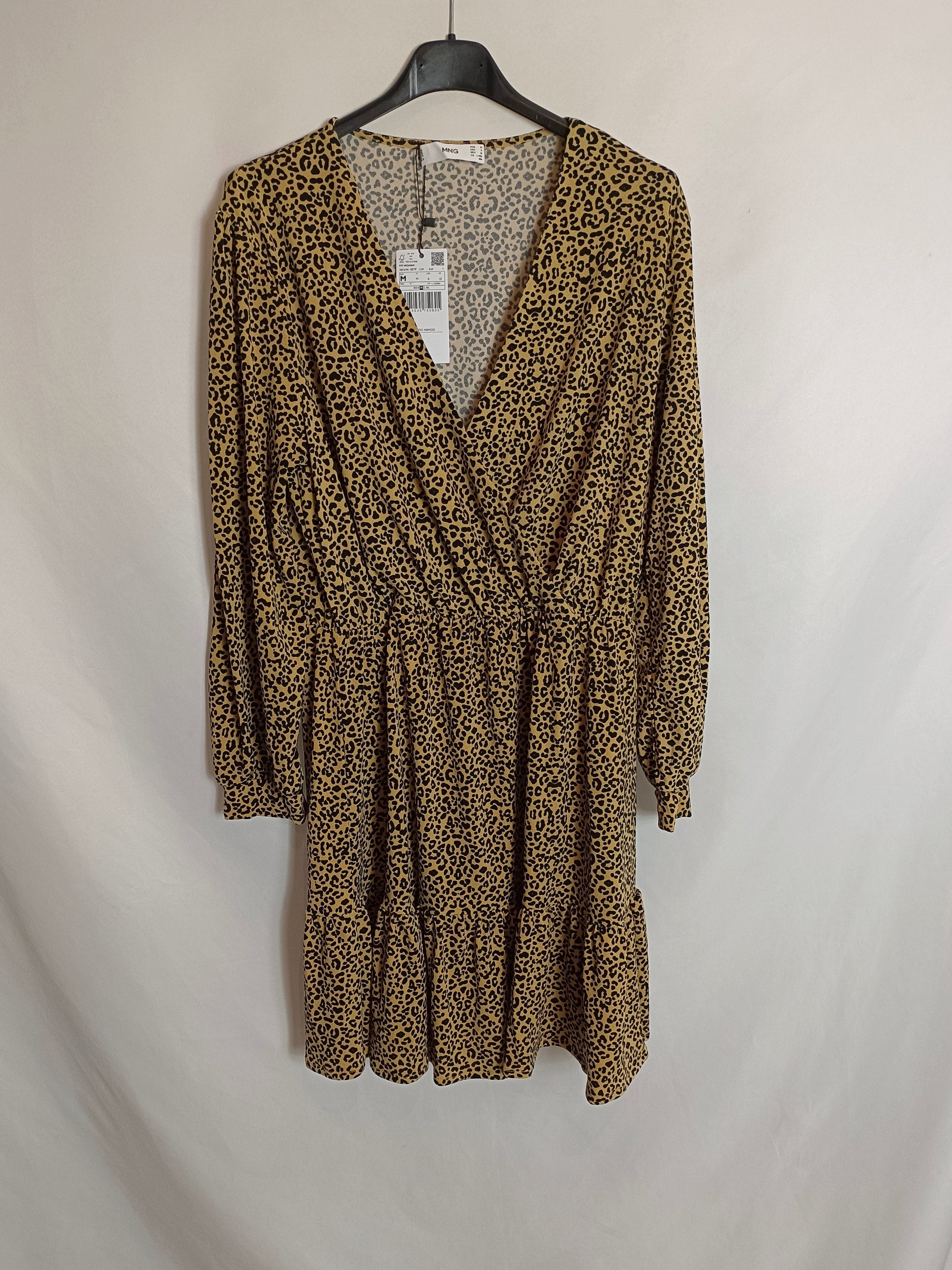 NUEVO CON ETIQUETA. Vestido corto camel con estampado animal print. Tejido elástico