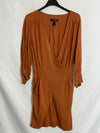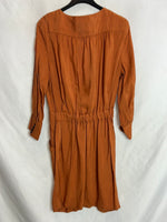 Vestido corto color teja con la cintura elástica y falda con pliegue . Largo 88cm