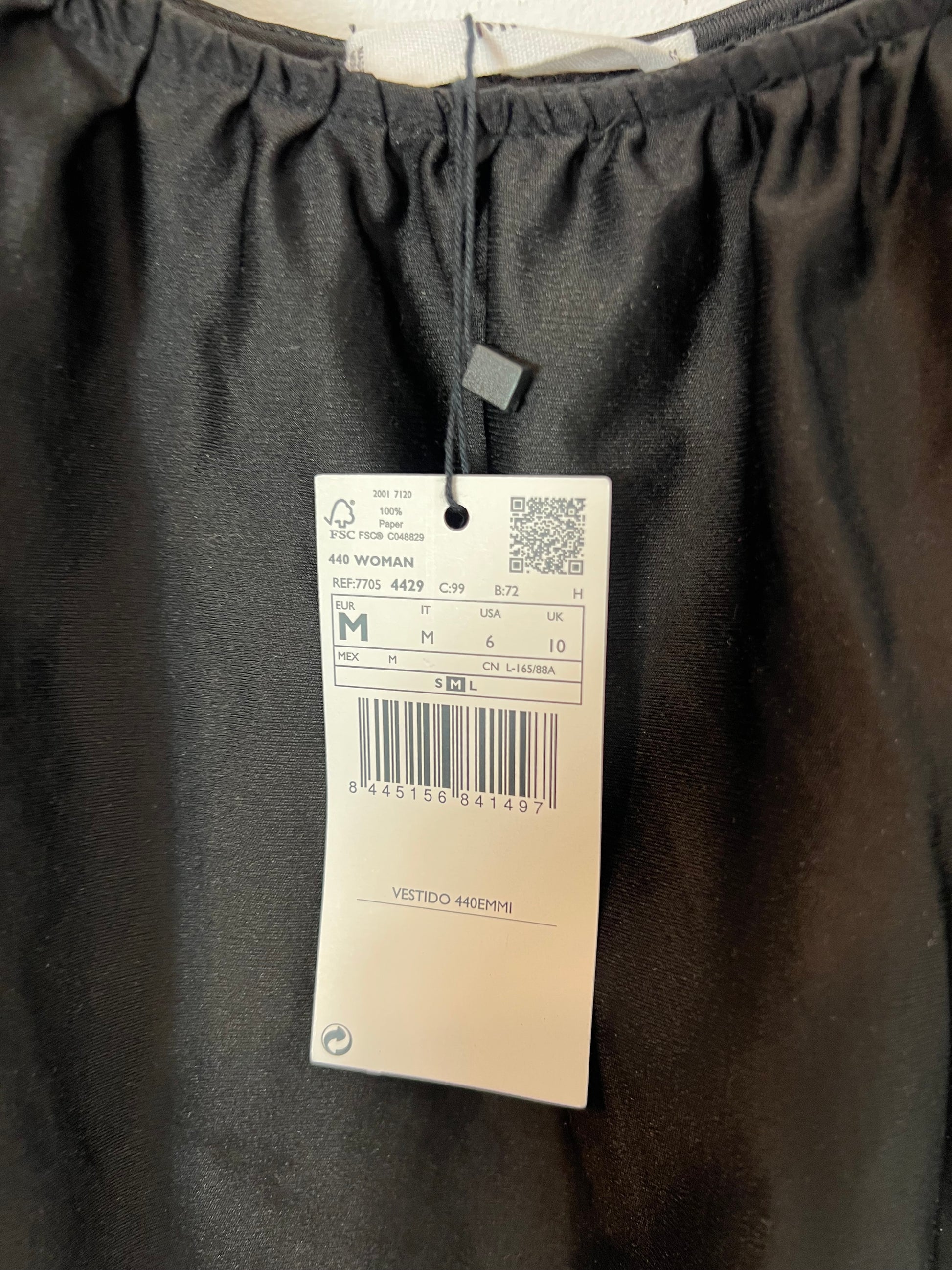 NUEVO CON ETIQUETA. Vestido croto negro manga farol. Semi elastico