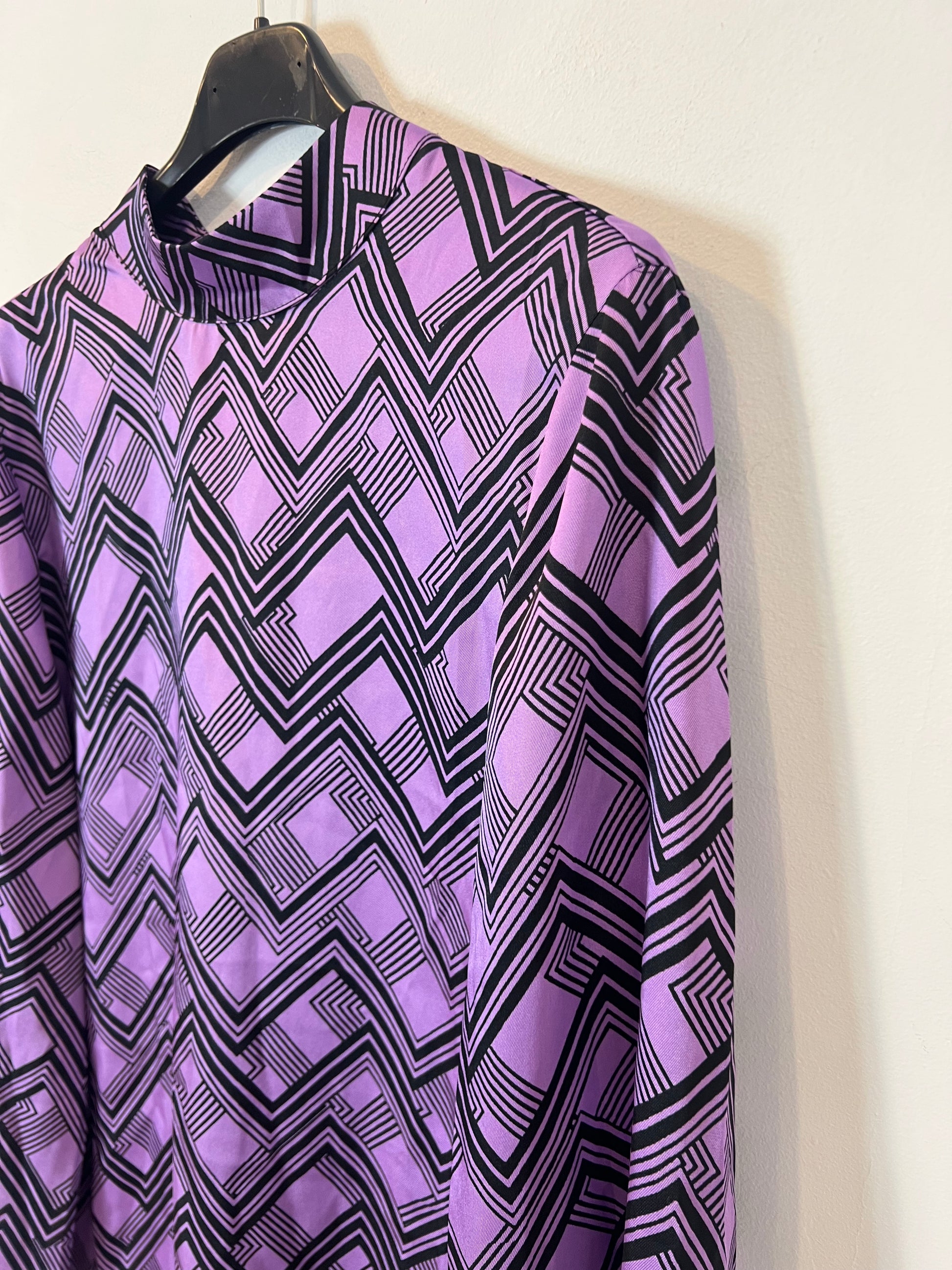 Vestido fluido estampado retro. Largo 88 cm