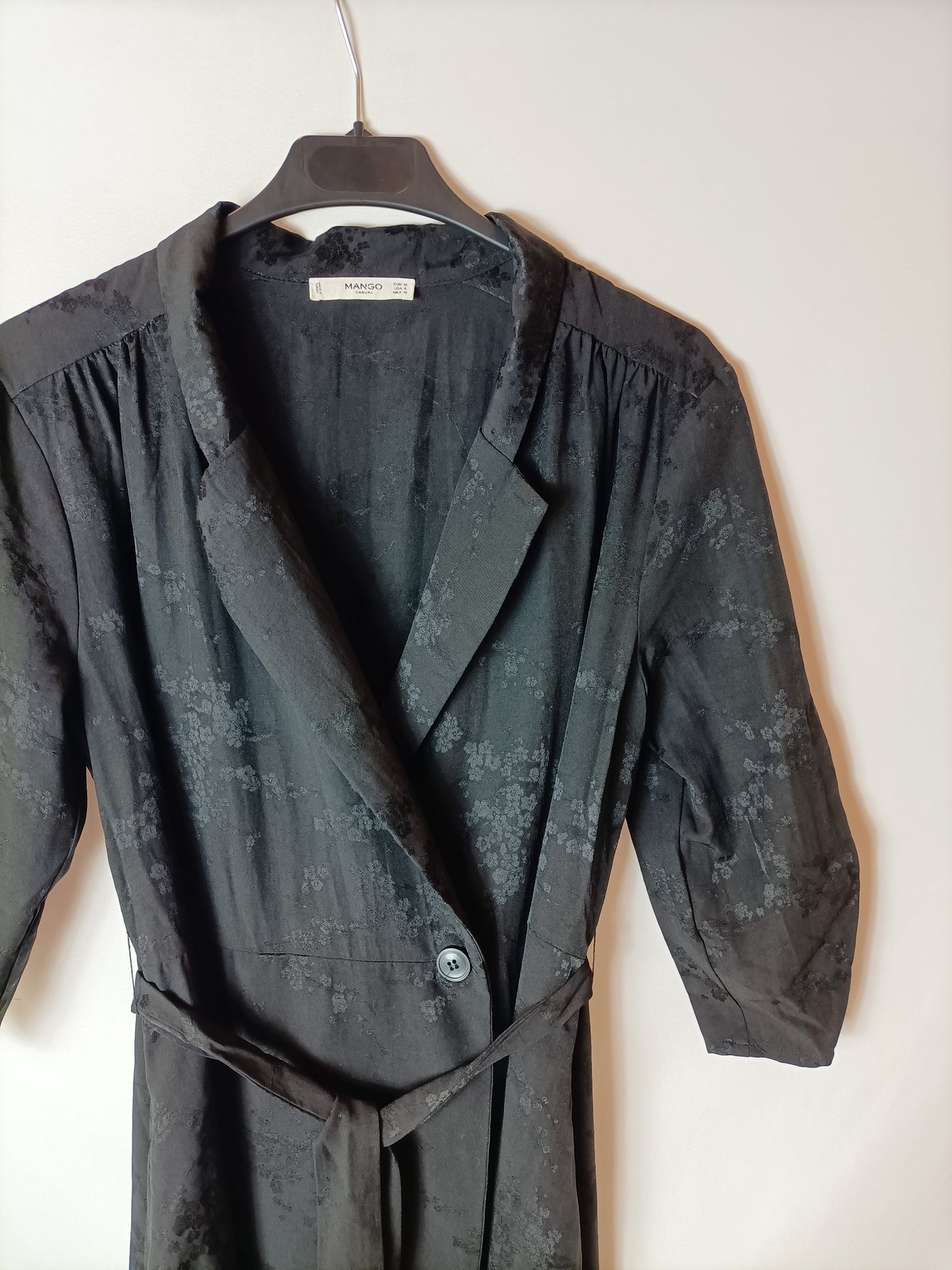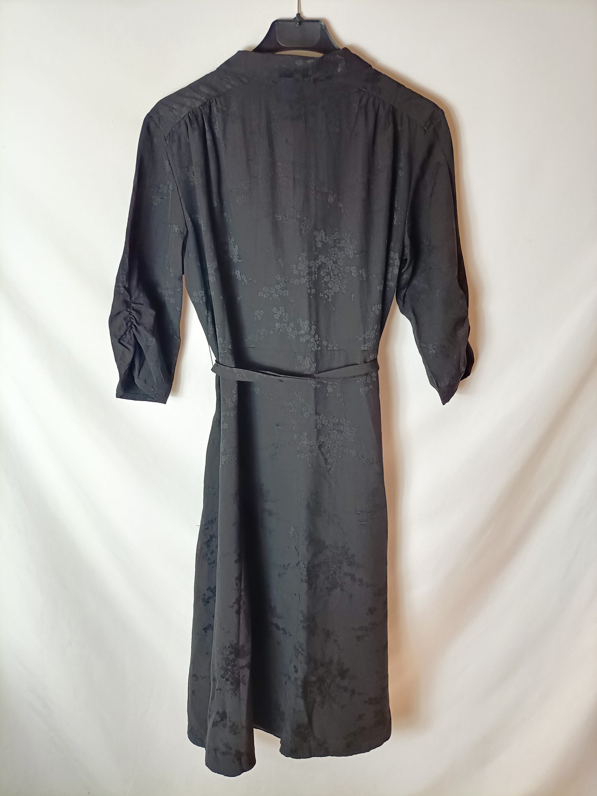 MANGO. Vestido/kimono negro flores T.m