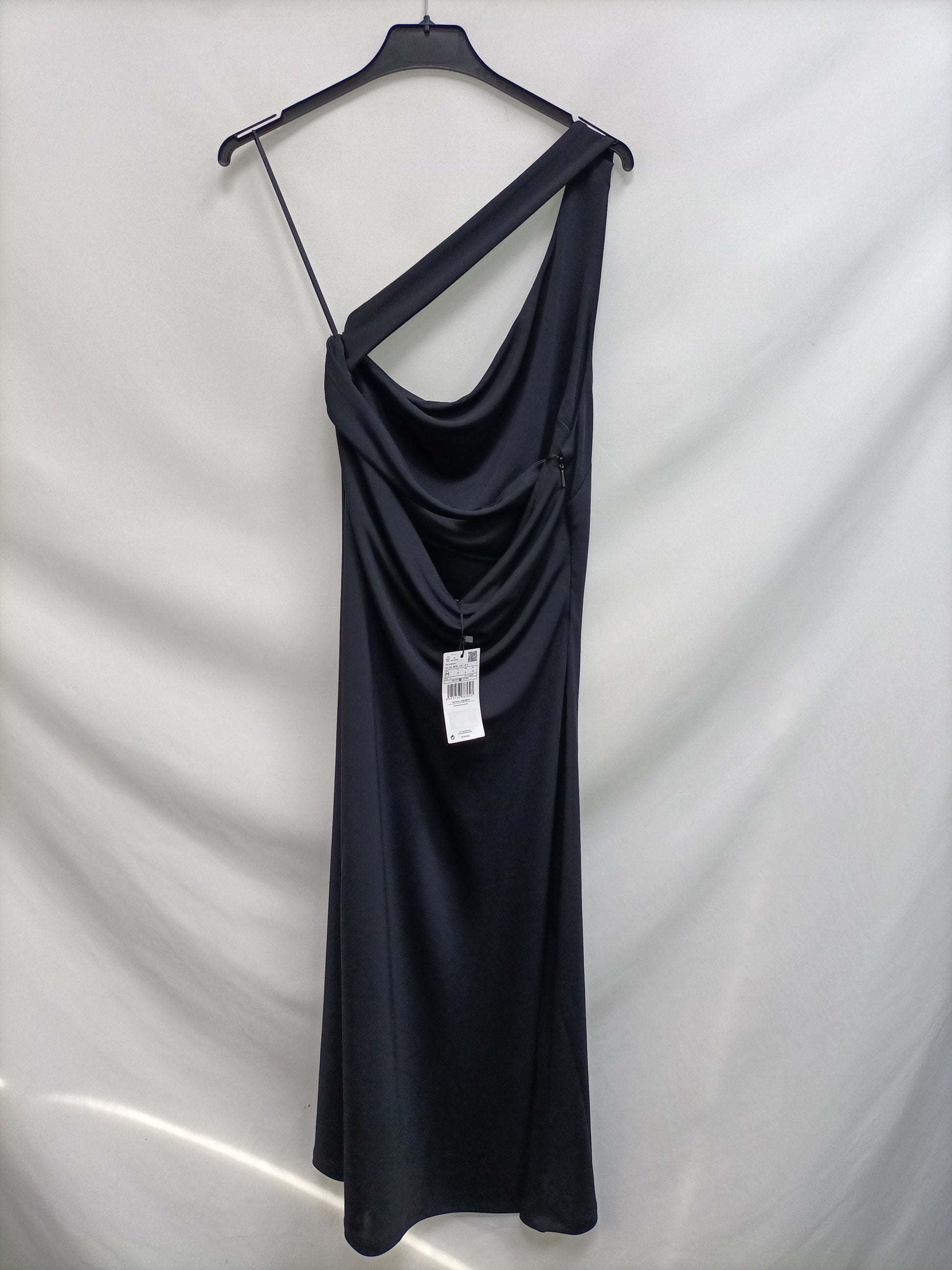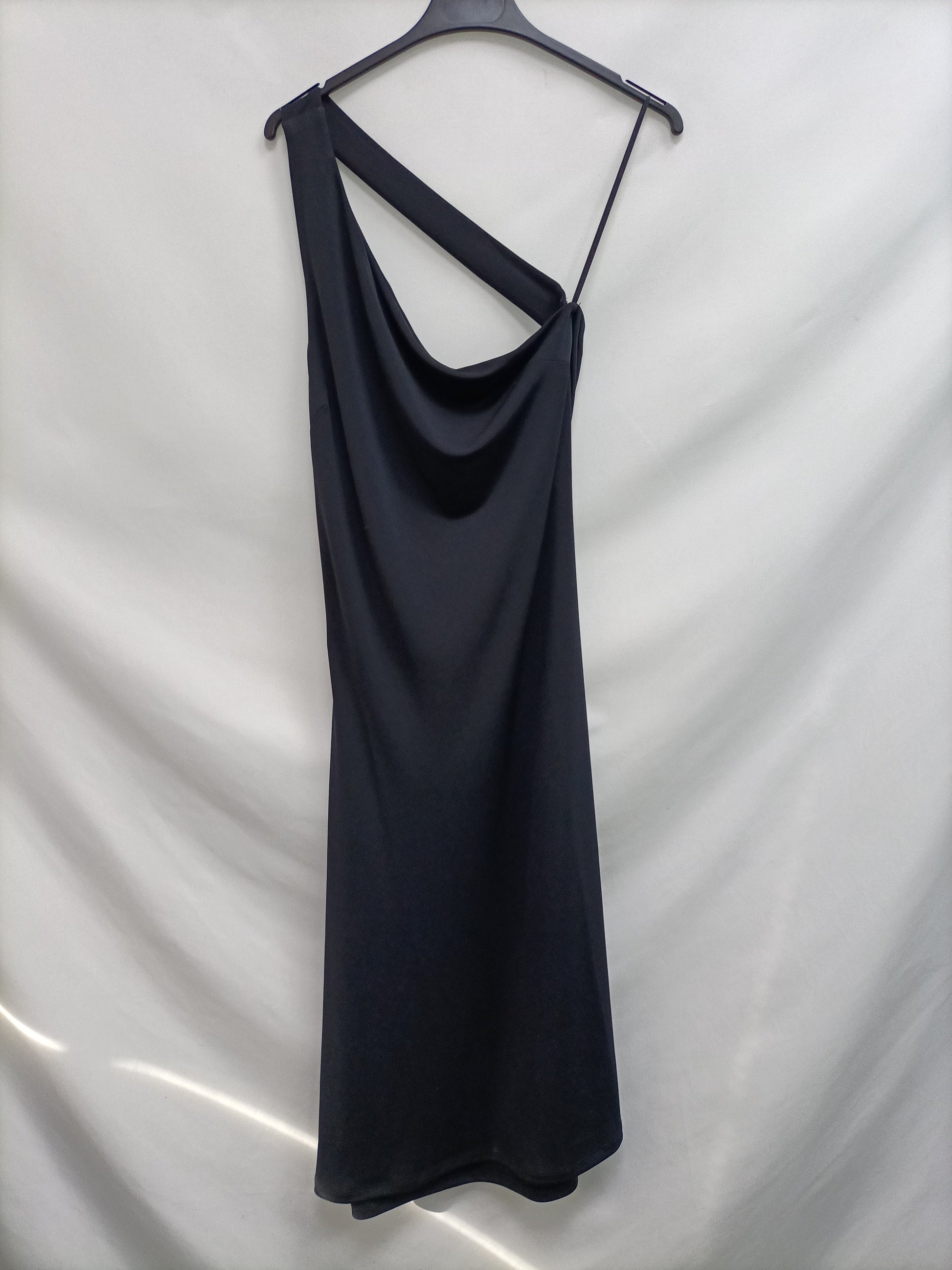 NUEVO CON ETIQUETA . Vestido midi asimétrico elastico. largo 131cm