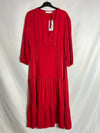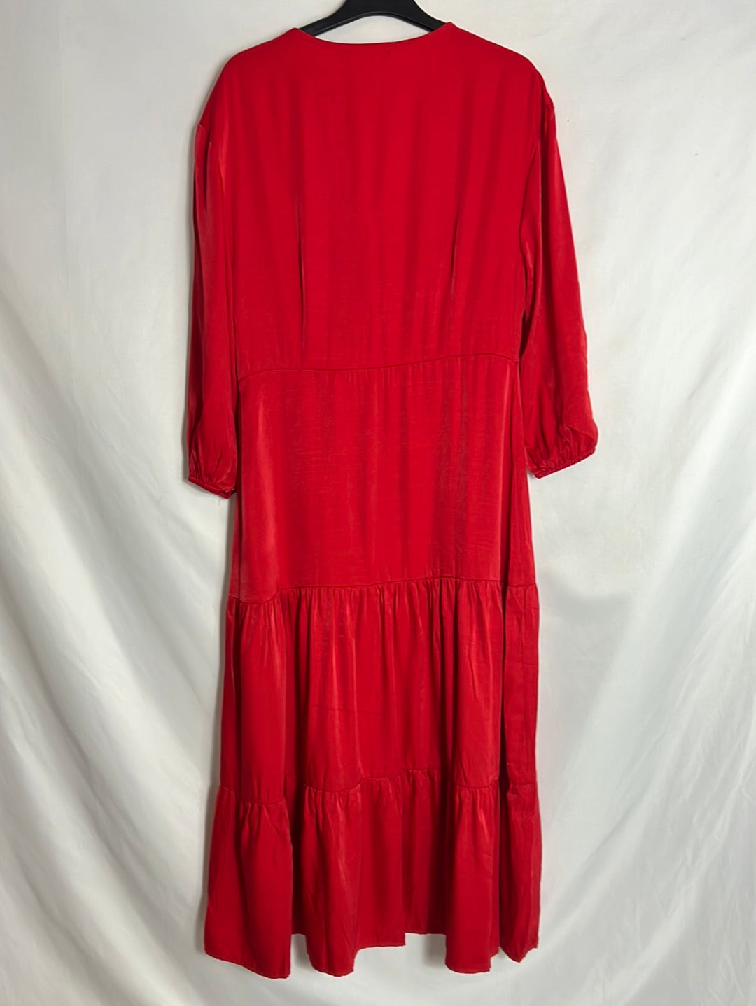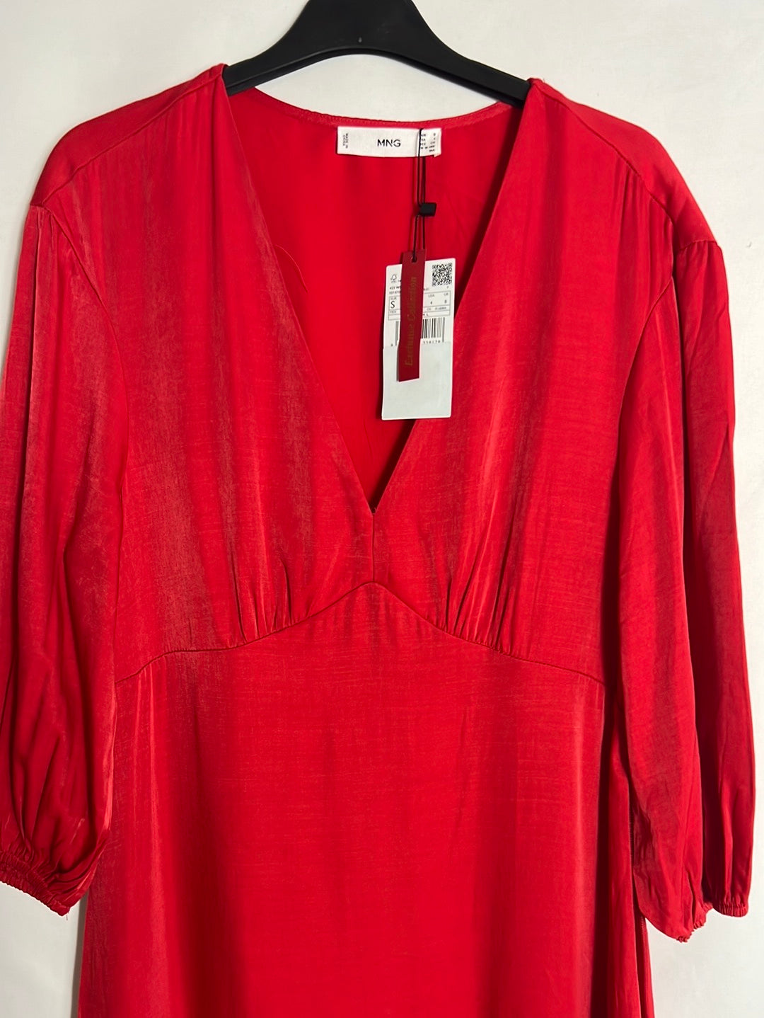 NUEVO CON ETIQUETA. Vestido midi rojo satinado. Tejido no elástico