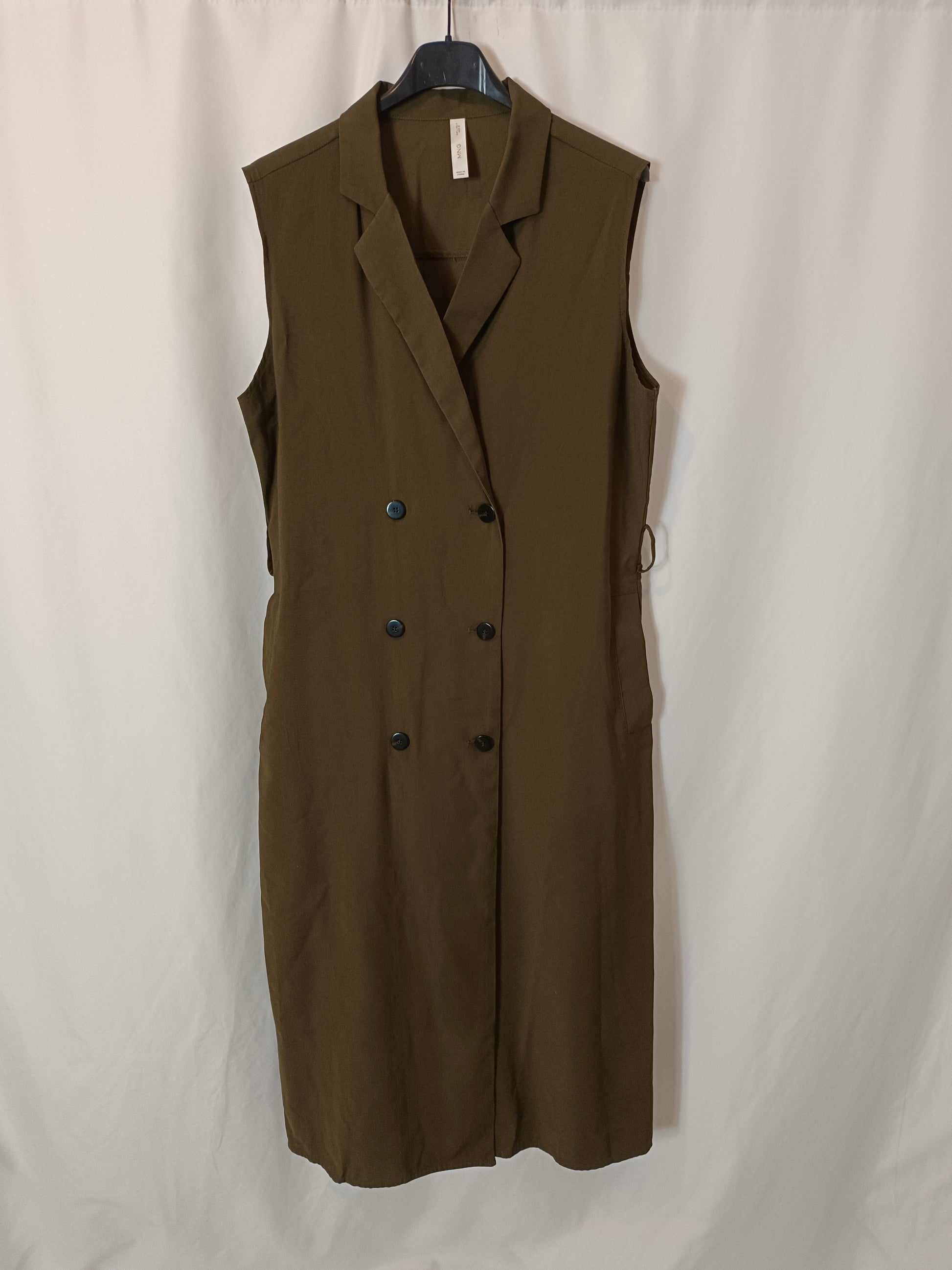 MANGO. Vestido midi verde cruzado T.l