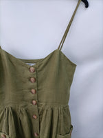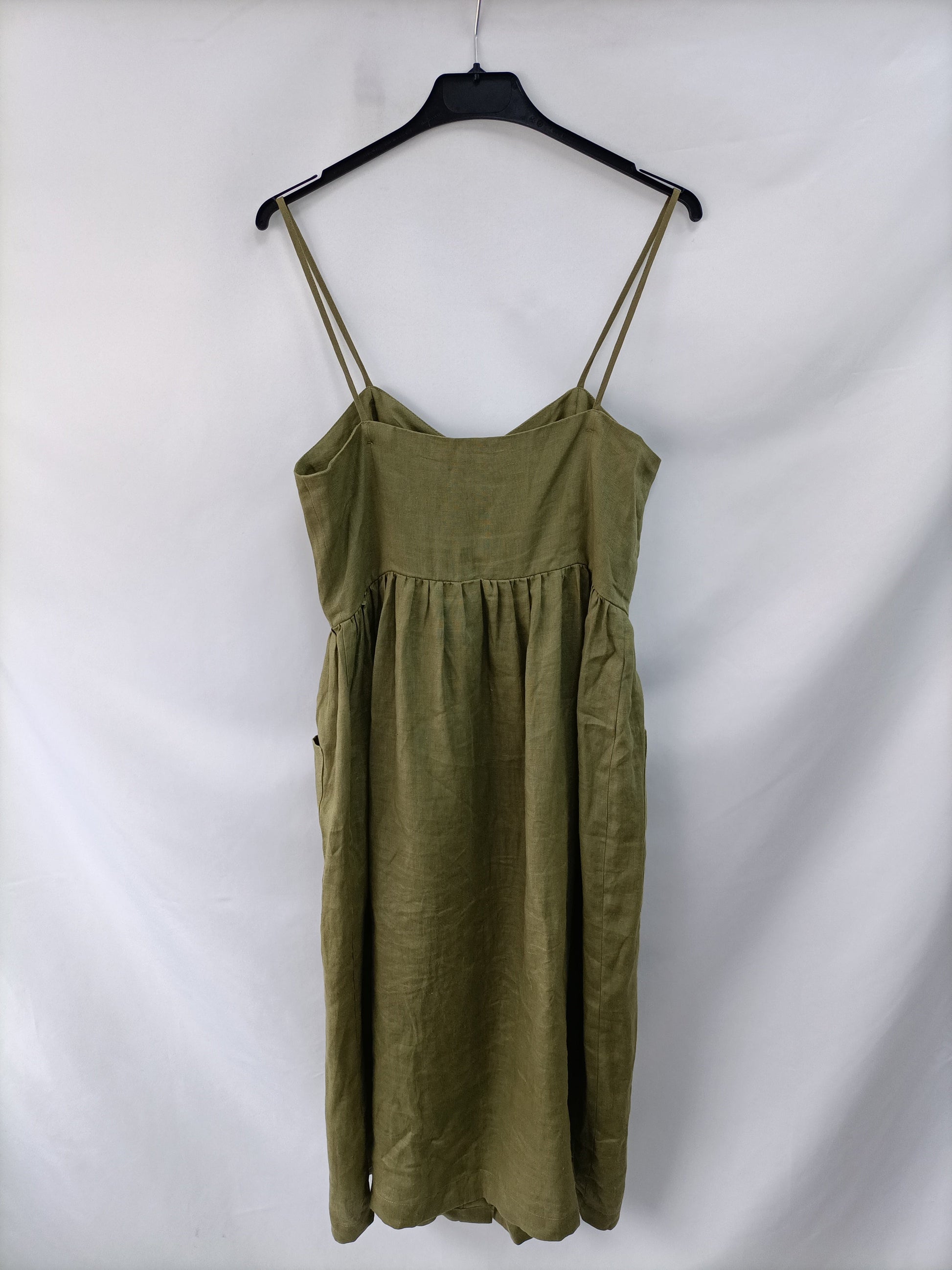 Vestido midi verde Abotonado de tejido tipo lino. No elástico. De sisa a sisa 42 cm largo 118 cm