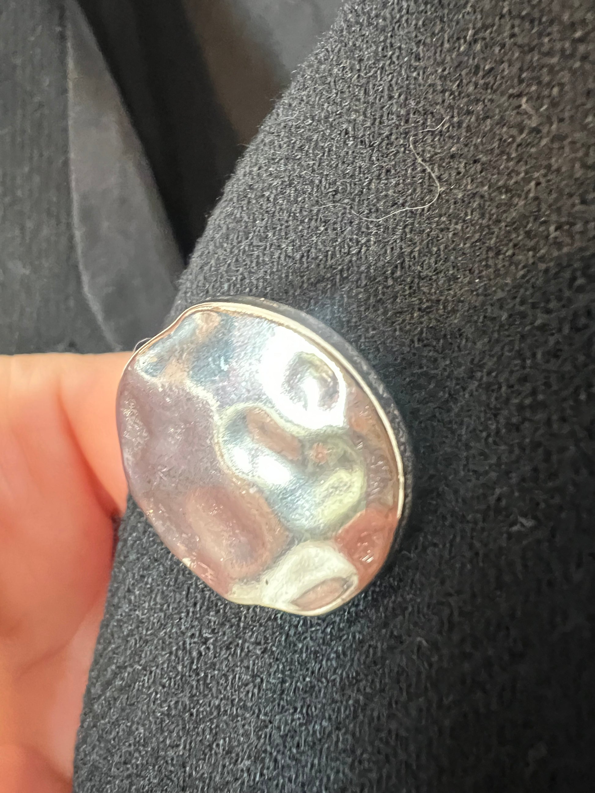 Vestido corto negro con detalle de botones plateados. Puede servir de chaleco. Epatada 45cm, largo 88cm