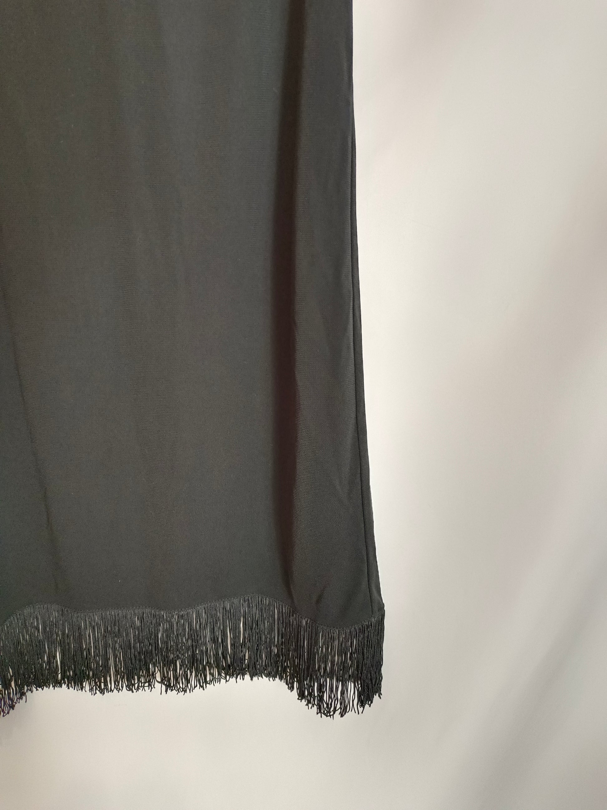NUEVO CON ETIQUETA. Vestido corto negro con flecos en la parte de abajo