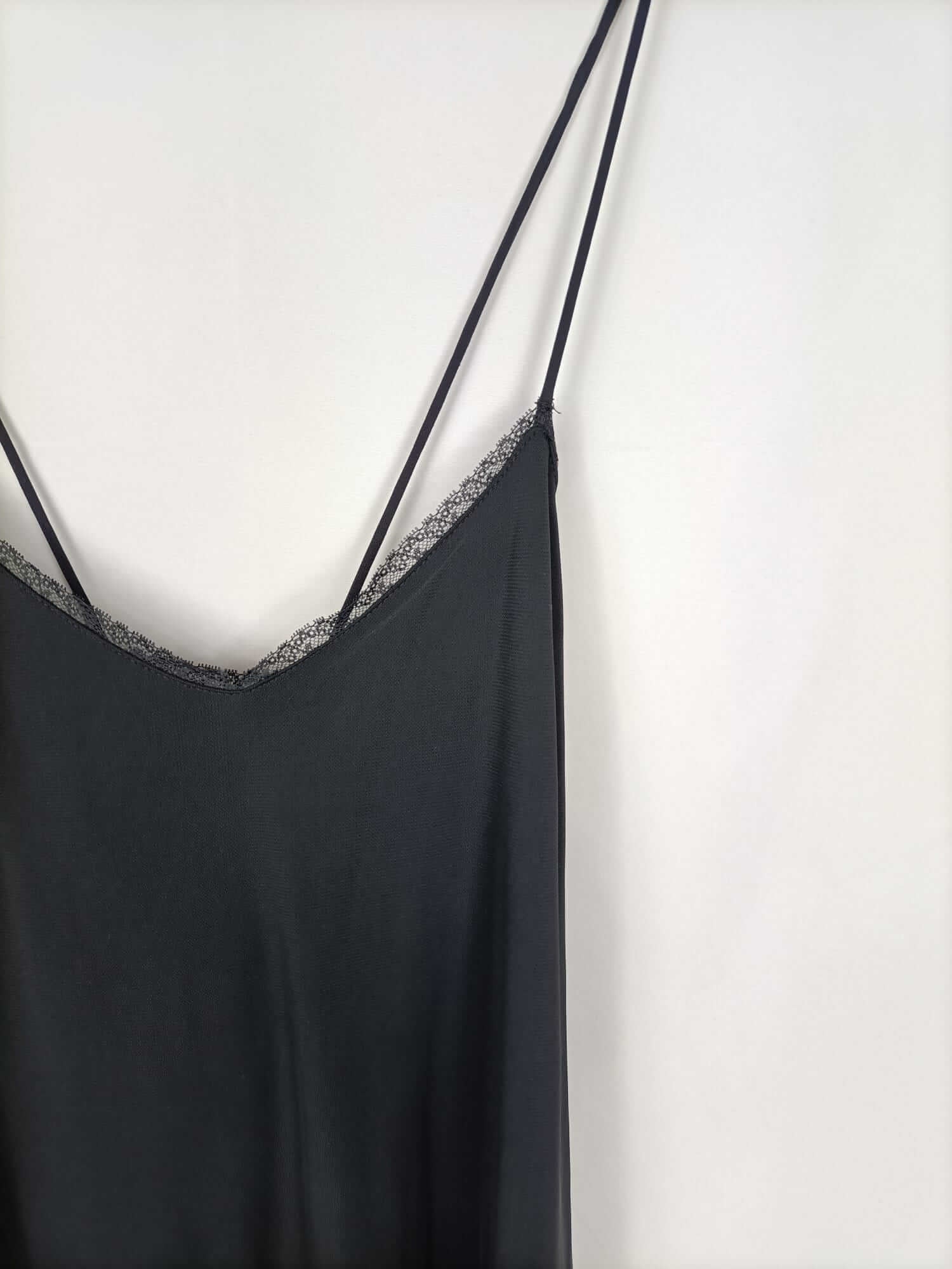 Mango. Vestido negro lencero con detalles de encaje. Elástico. Tipo tull. Largo 100 cm
