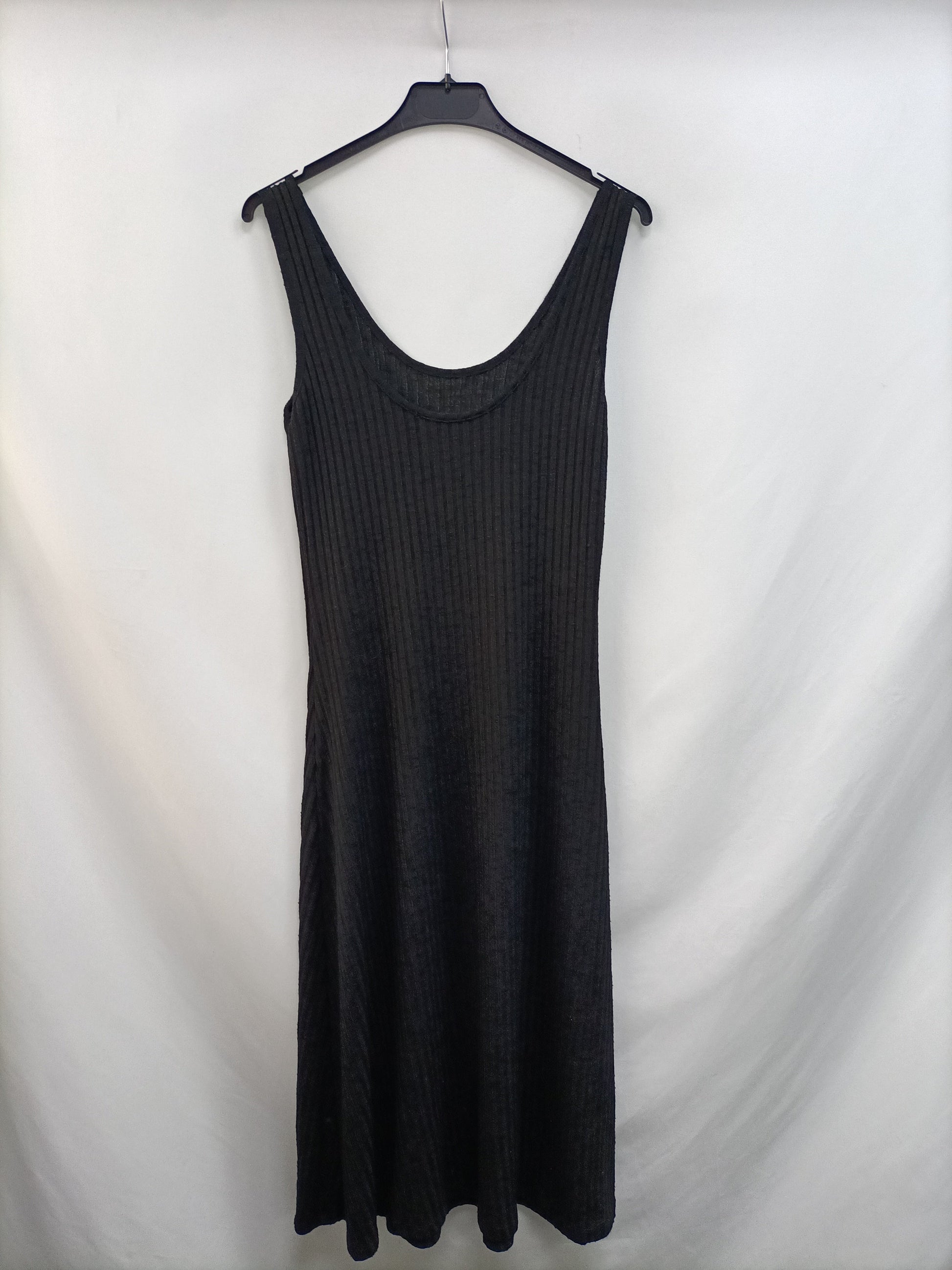 Vestido midi elastico negro de canalé. Fluido. Largo 116 cm