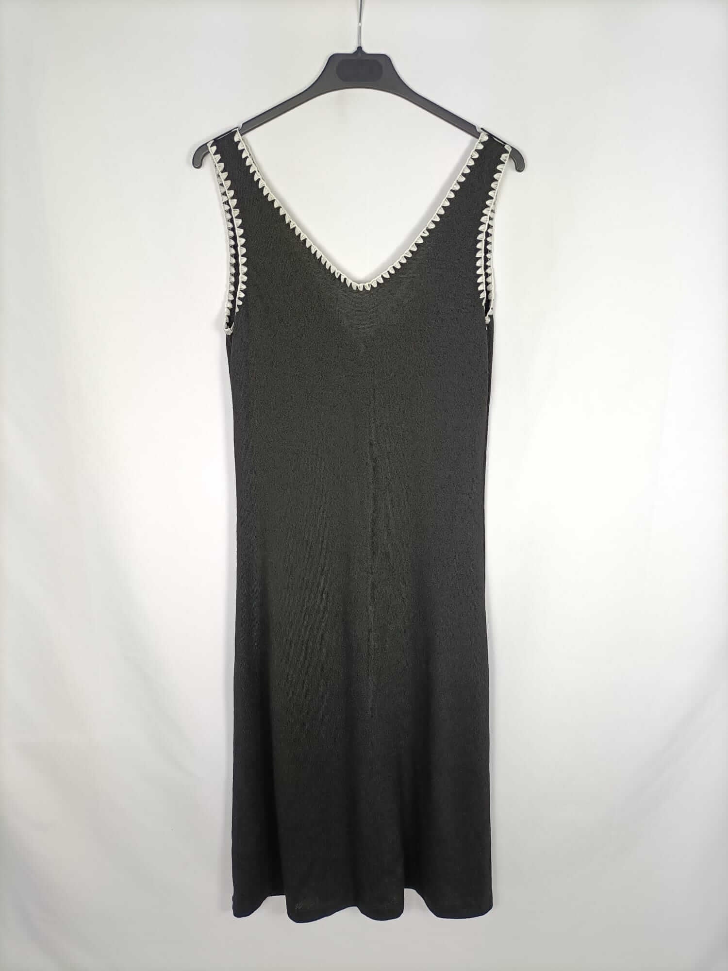 Mango. S. Vestido de punto negro midi con detalle blanco bordados en el Escote. Elastico. Largo 119 cm