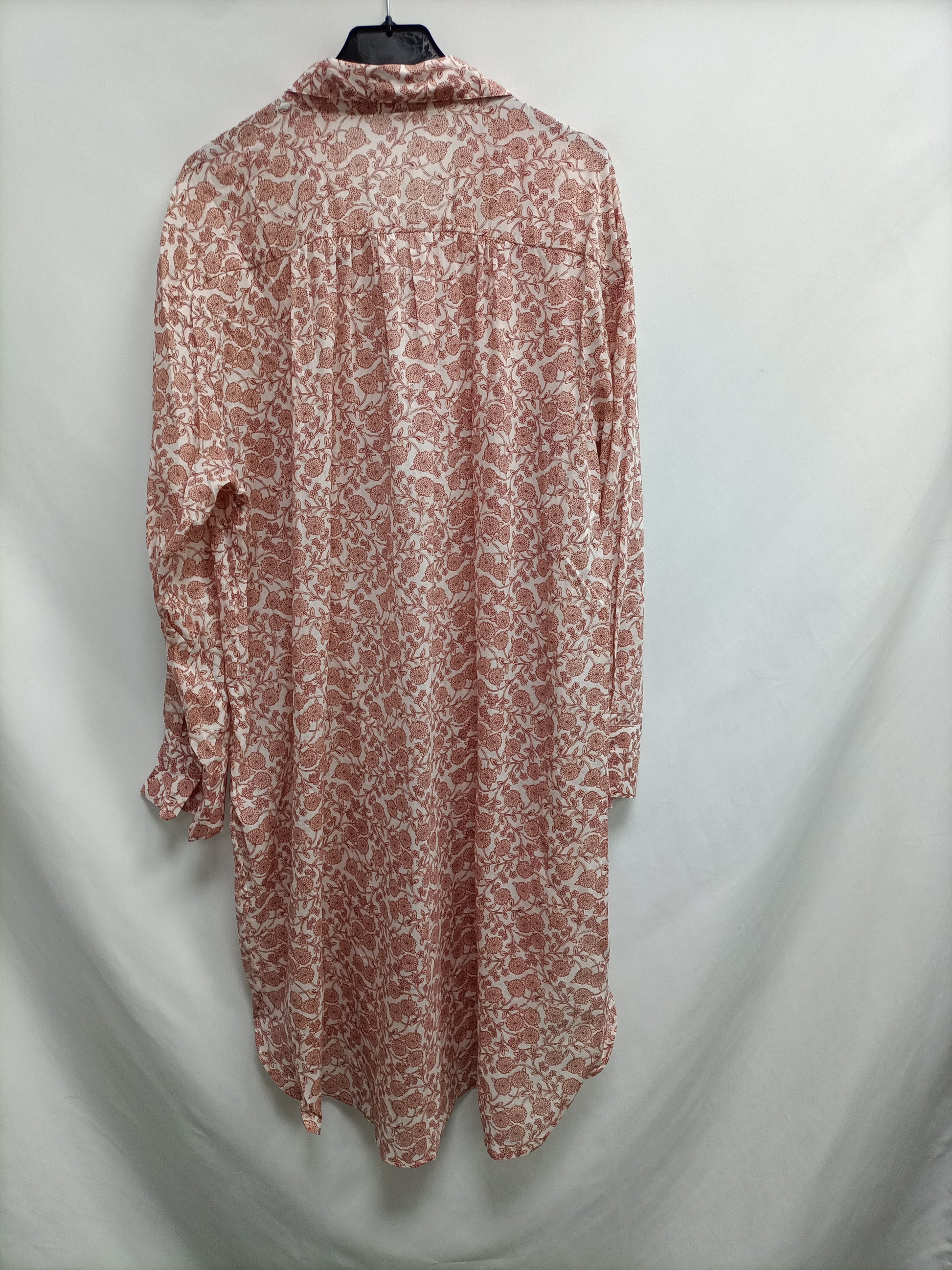 Vestido corto Abotonado, tonos rositas y beiges, semitransparente. Largo 108 cm