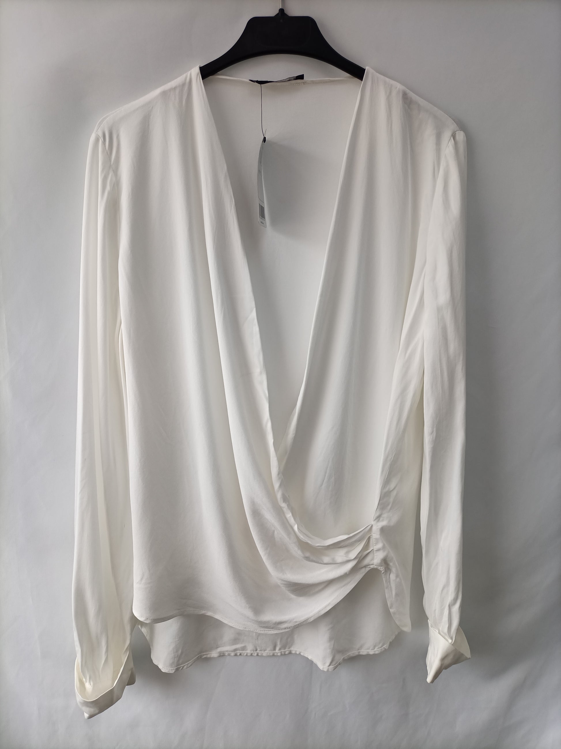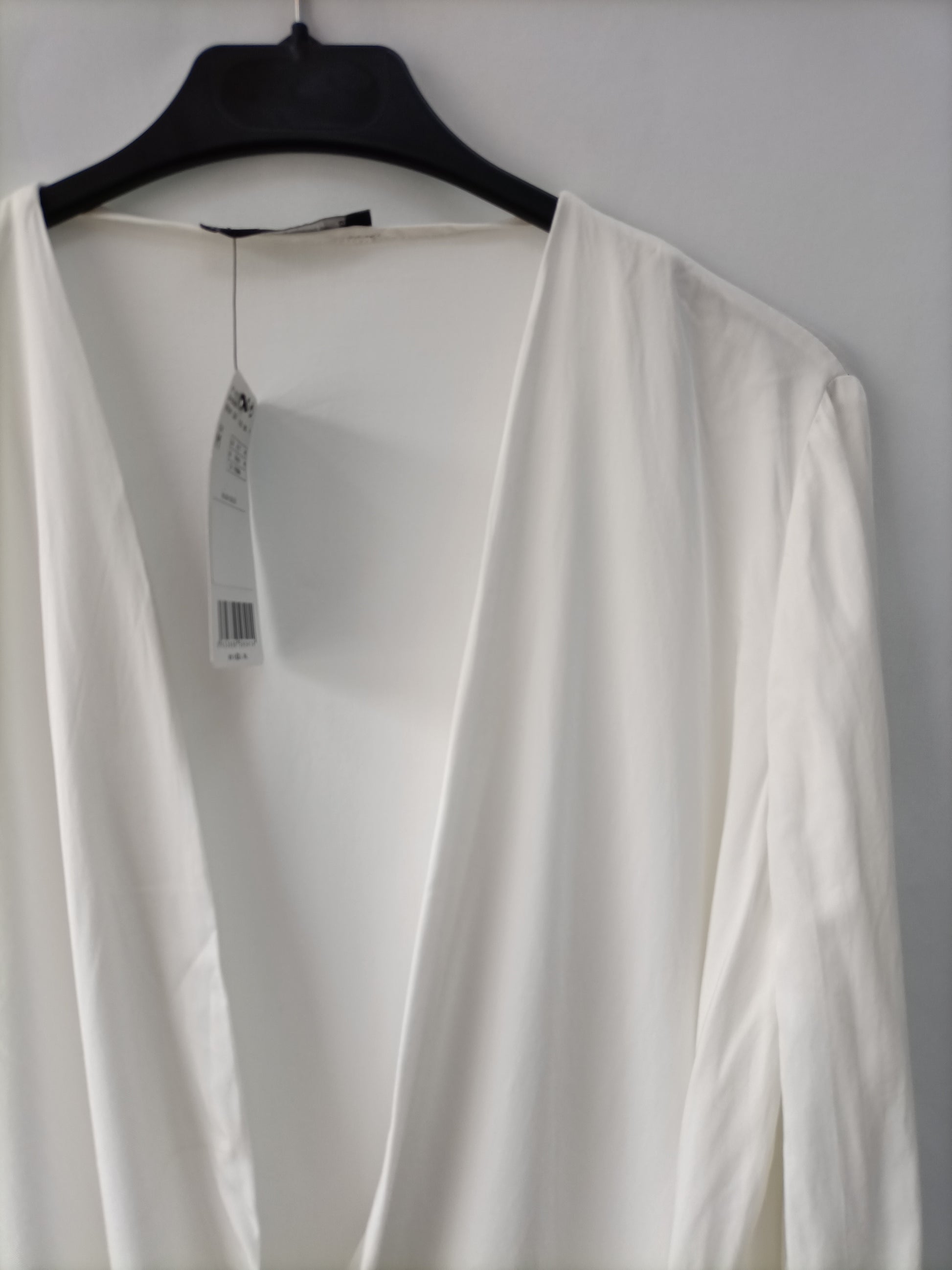 Mango. NUEVO CON ETIQUETA. blusa blanca cruzada con escote en pico. Fluida. Largo 72 cm
