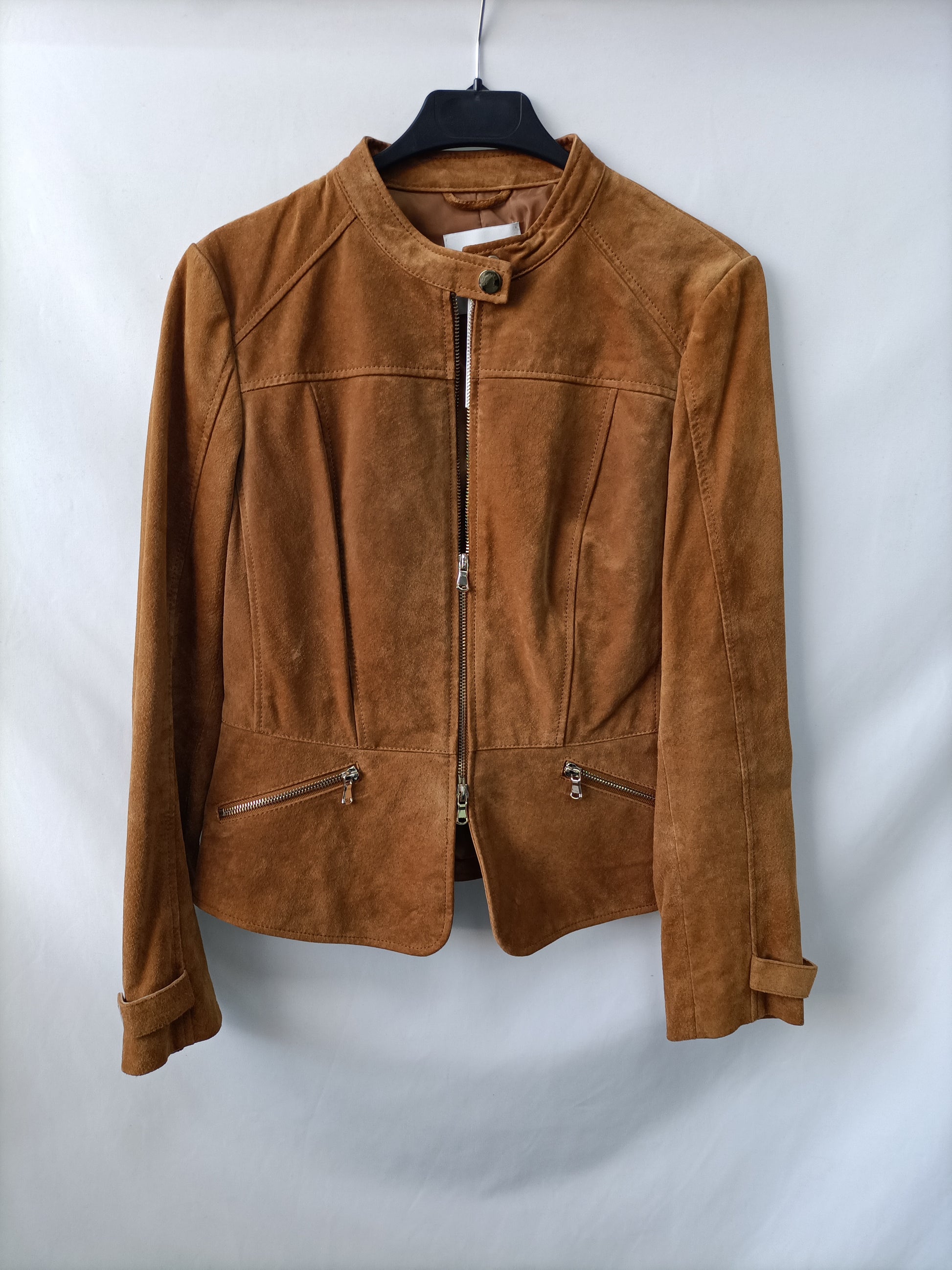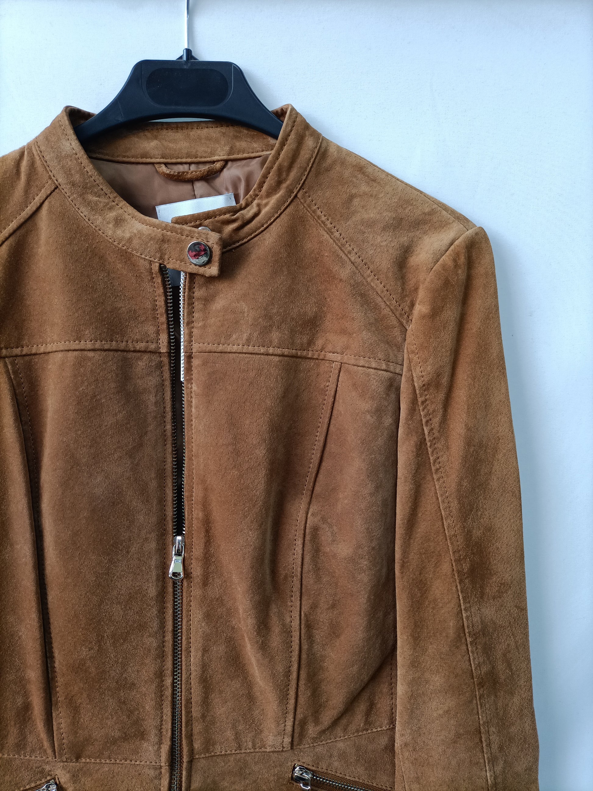 Cazadora 100% piel de mango color camel. De sisa a sisa 46 cm largo 57 cm
